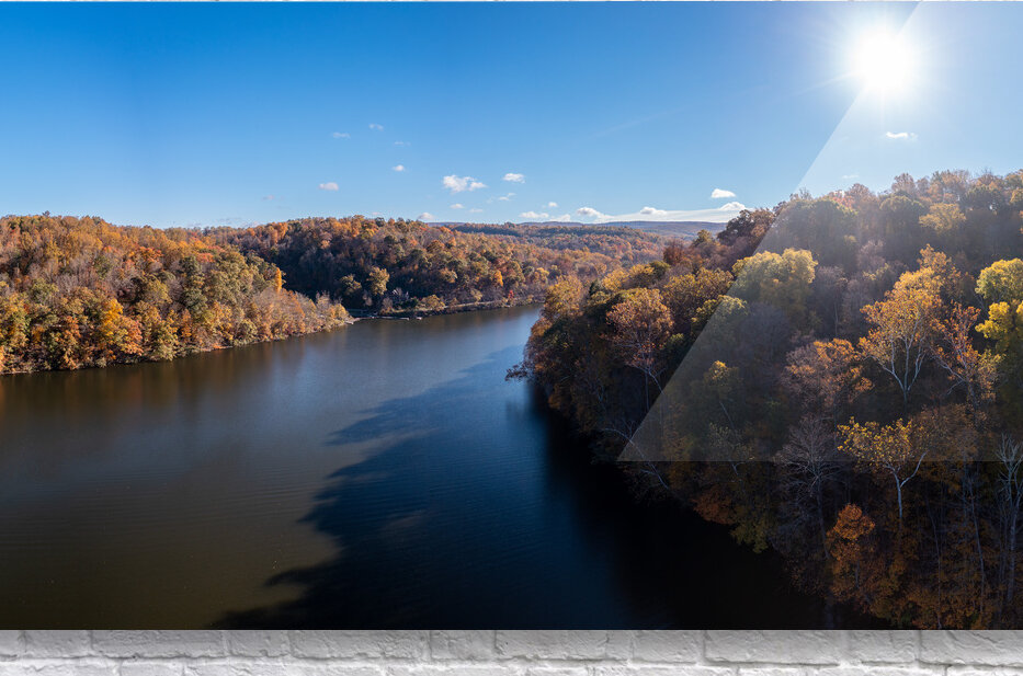 ABOUT THIS ARTWORK: PANORAMIC FALL TREES AROUND THE WATER AT CHEAT LAKE PARK MORGAN