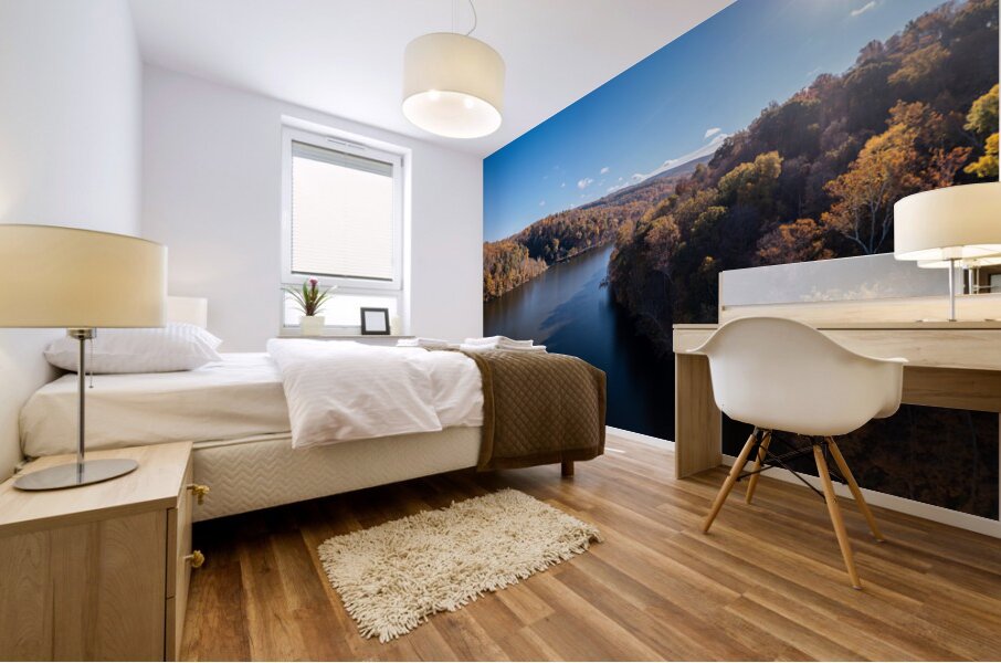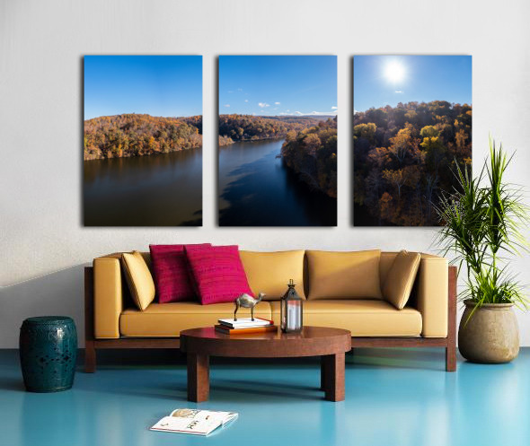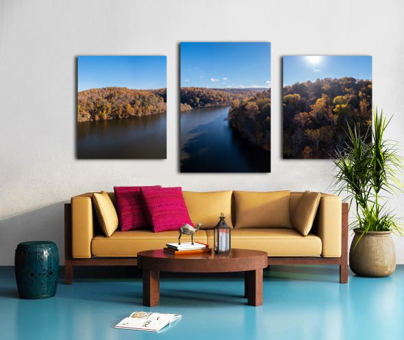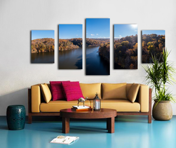 Panoramic fall trees around the water at Cheat Lake Park Morgan Wood print