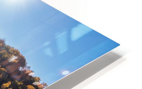 Panoramic fall trees around the water at Cheat Lake Park Morgan  Wood print