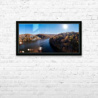 Panoramic fall trees around the water at Cheat Lake Park Morgan Picture Frame Printing