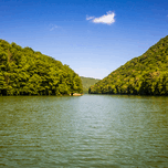 Calm warm water on Cheat Lake near Morgantown West Virginia