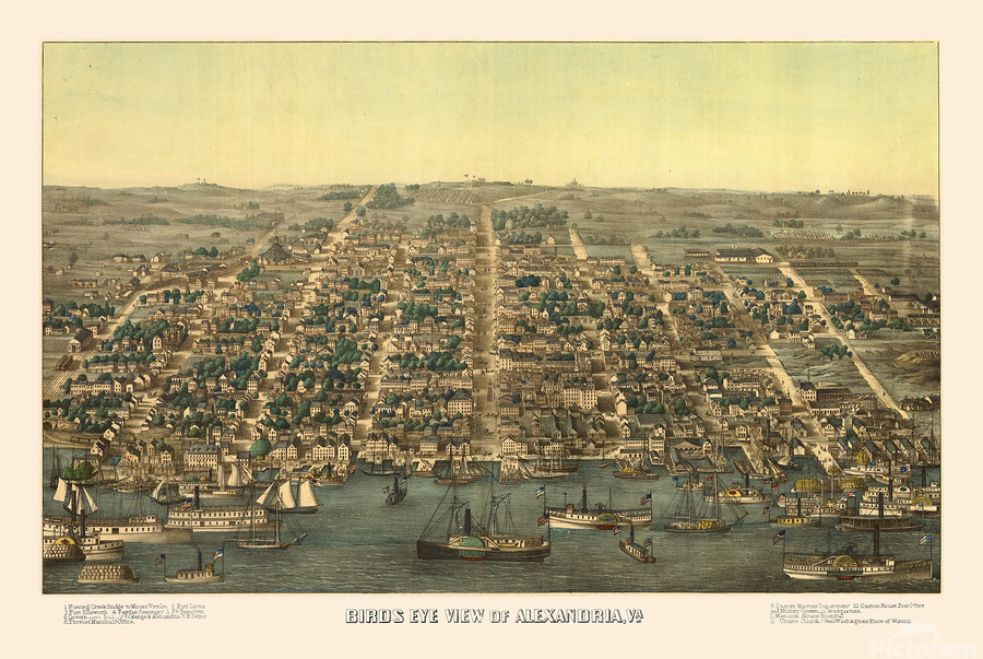 Restored birds eye view of street plan of Alexandria VA 1863 Picture Frame Printing