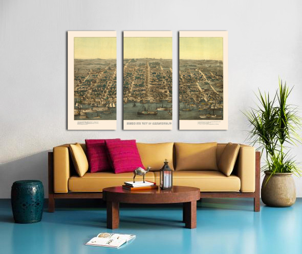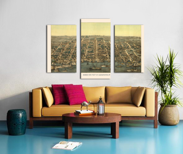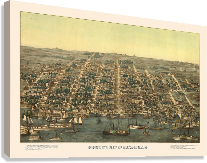 Restored birds eye view of street plan of Alexandria VA 1863 Canvas print