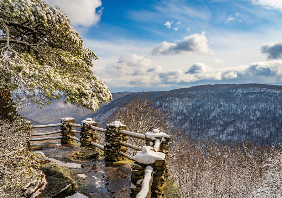 COOPERS ROCK OVERLOOK COVERED IN WINTER SNOW NEAR MORGANTOWN