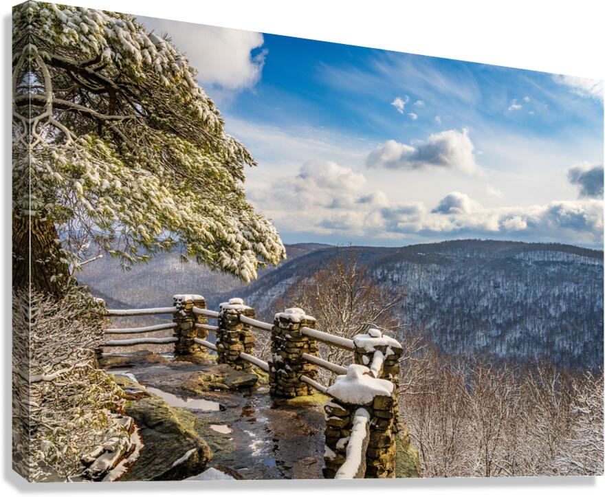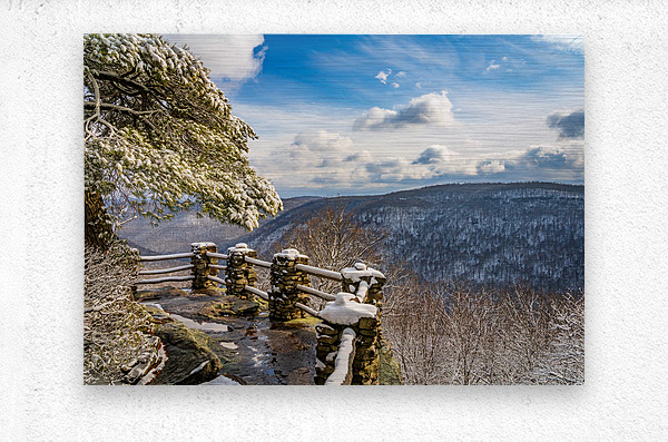 ABOUT THIS ARTWORK: COOPERS ROCK OVERLOOK COVERED IN WINTER SNOW NEAR MORGANTOWN
