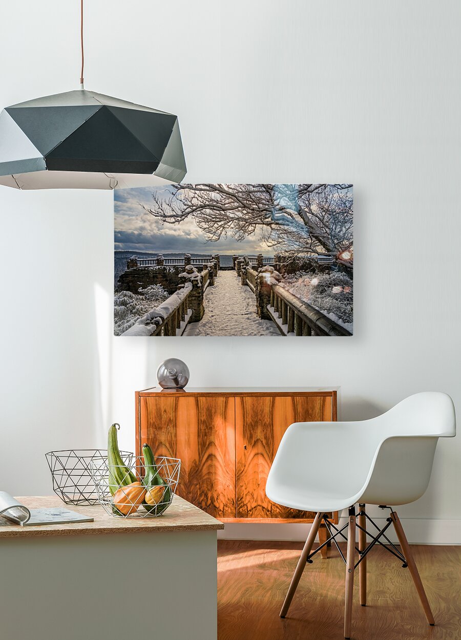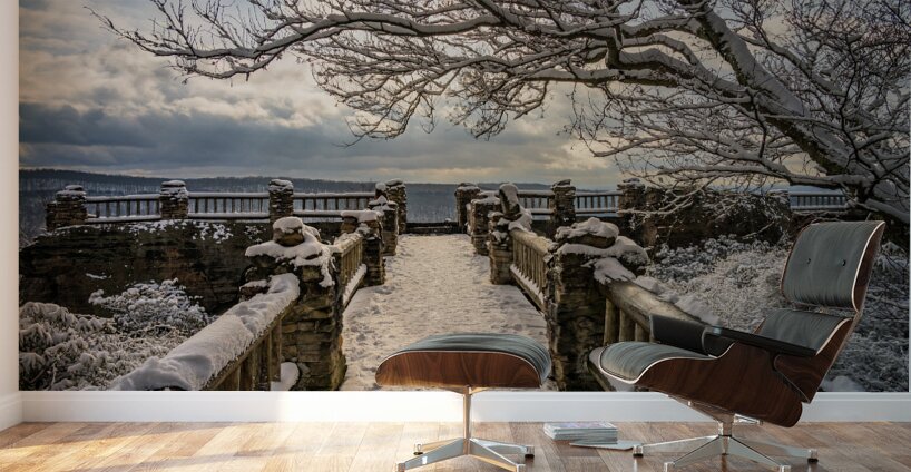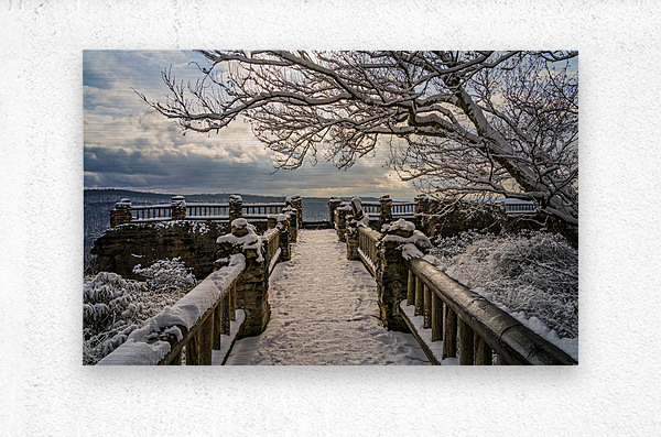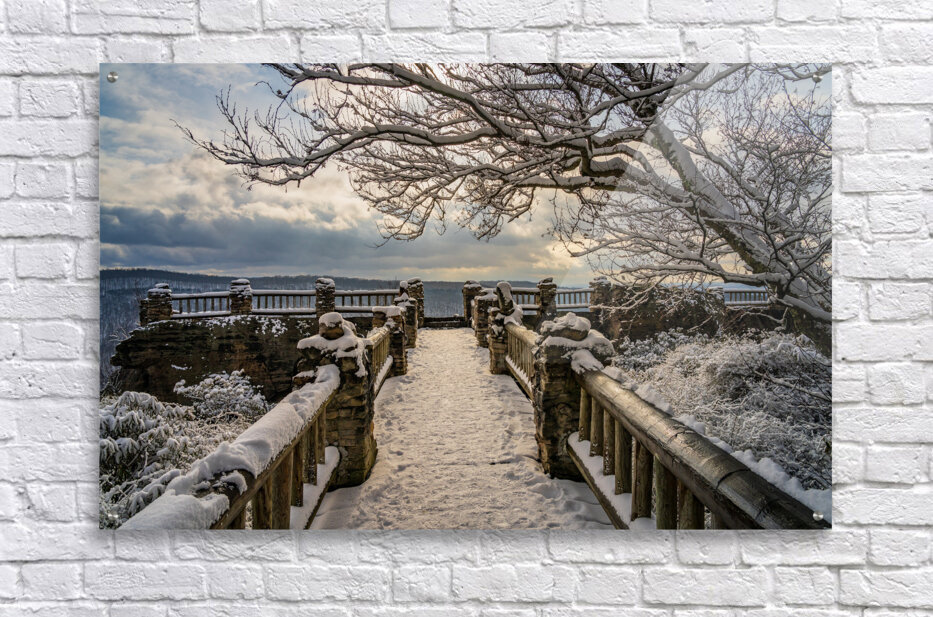 Get this artwork "Coopers Rock overlook on snow-covered pathway in WV" in a framed print.