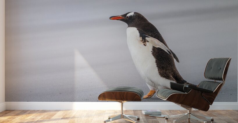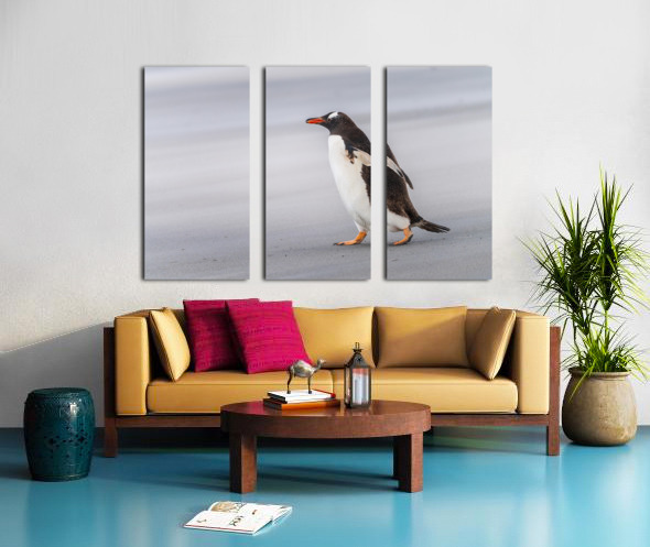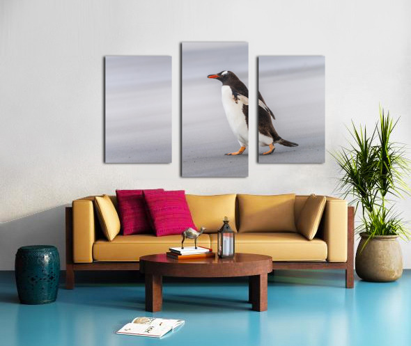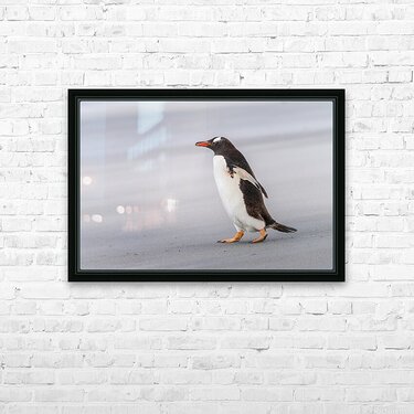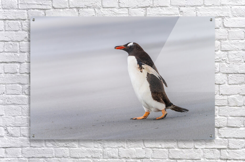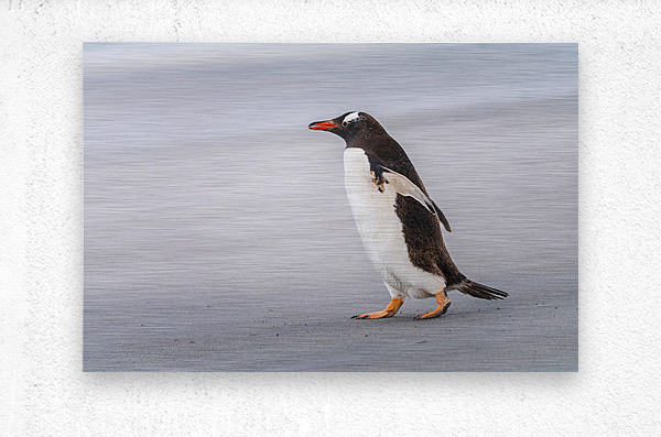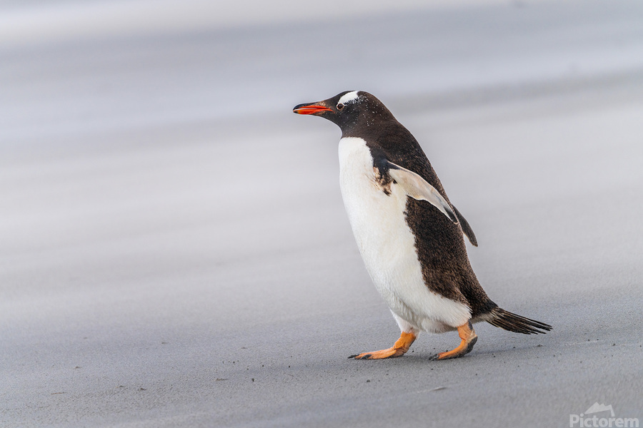 SUR CETTE OEUVRE: SINGLE GENTOO PENGUIN ON FALKLANDS WALKING TO OCEAN