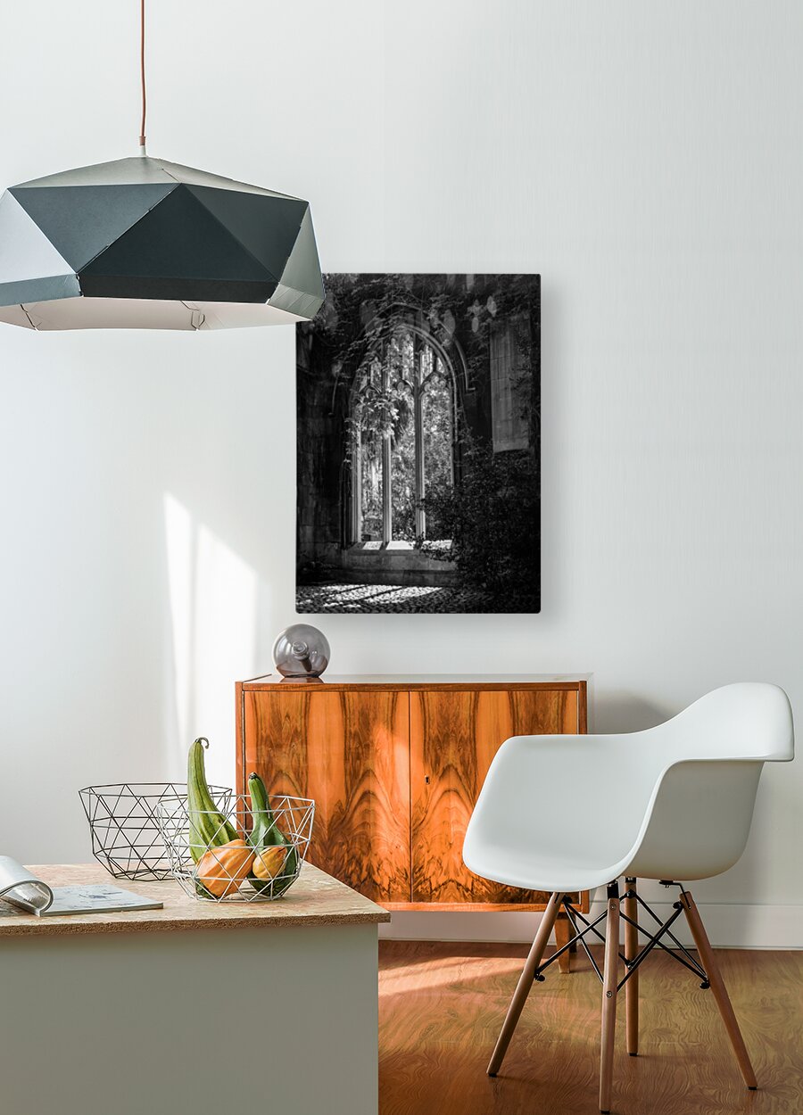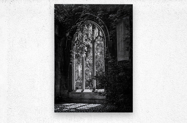 SUR CETTE OEUVRE: CREEPING PLANTS OVER THE EMPTY WINDOWS OF ST DUNSTAN CHURCH