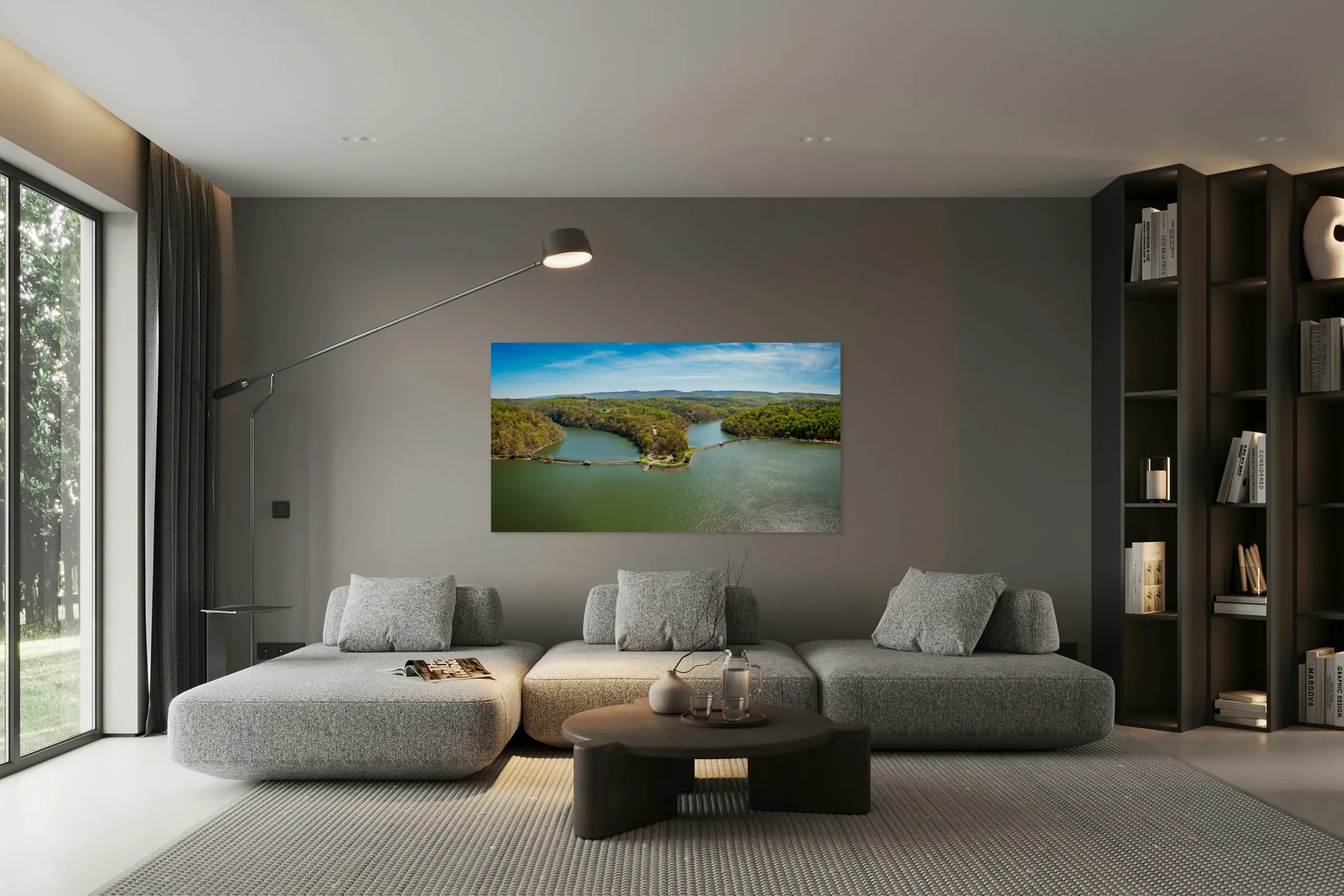 SUR CETTE OEUVRE: AERIAL PANORAMA OF CHEAT LAKE PARK NEAR MORGANTOWN WV