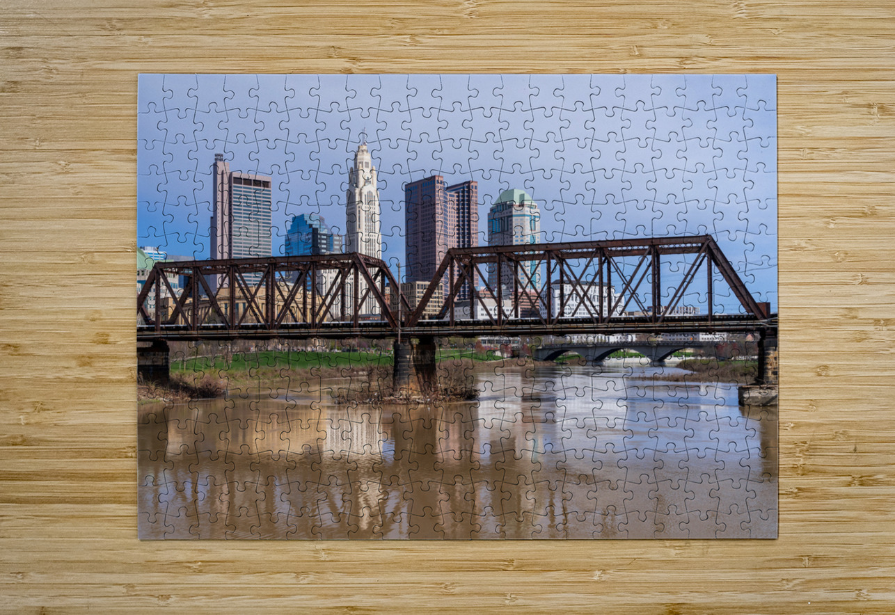 Columbus Ohio waterfront skyline behind railroad truss bridge Steve Heap Puzzle