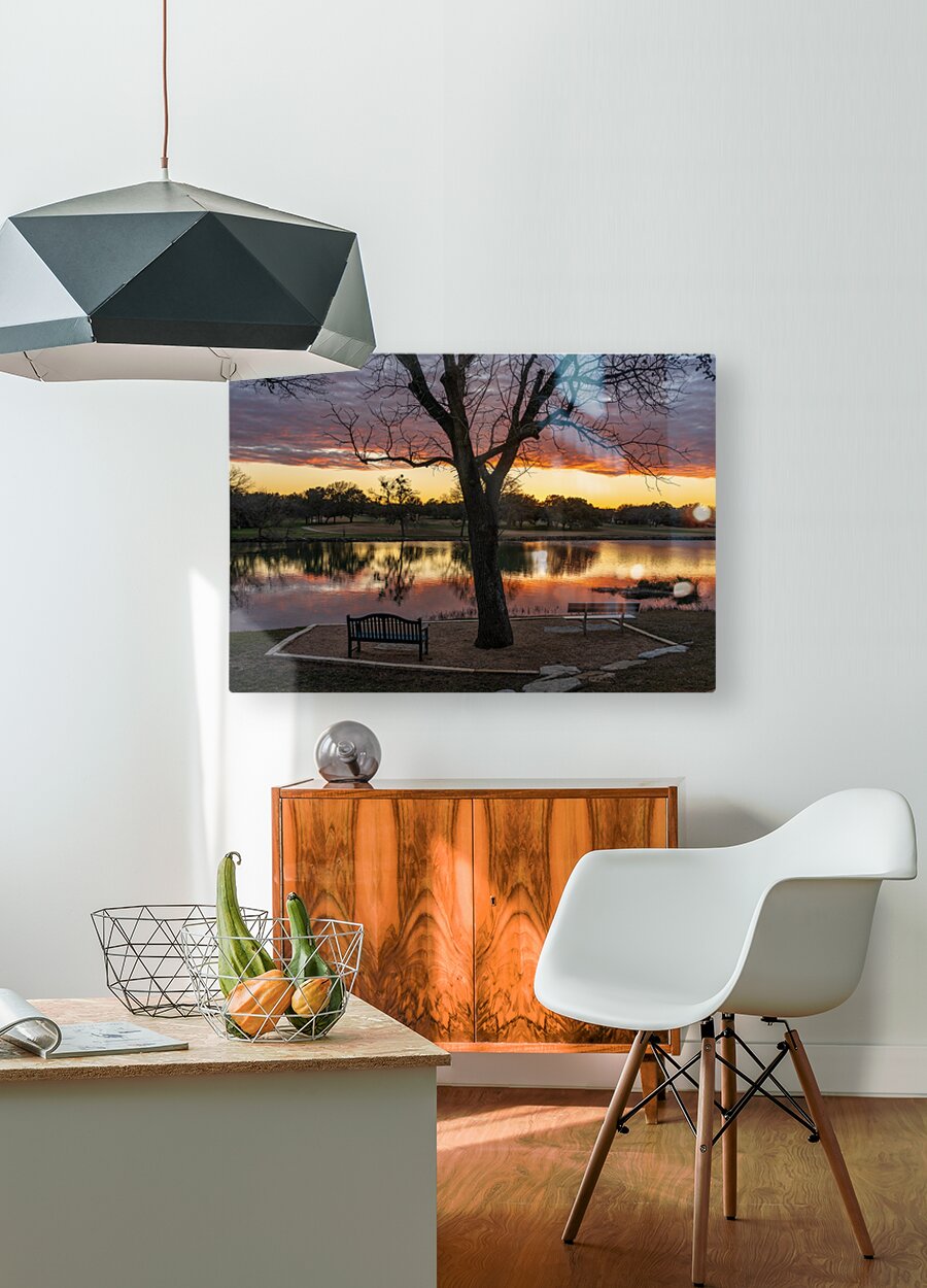 SUR CETTE OEUVRE: DRAMATIC SUNSET OVER LEGACY HILLS PARK LAKE AND GOLF COURSE NEAR