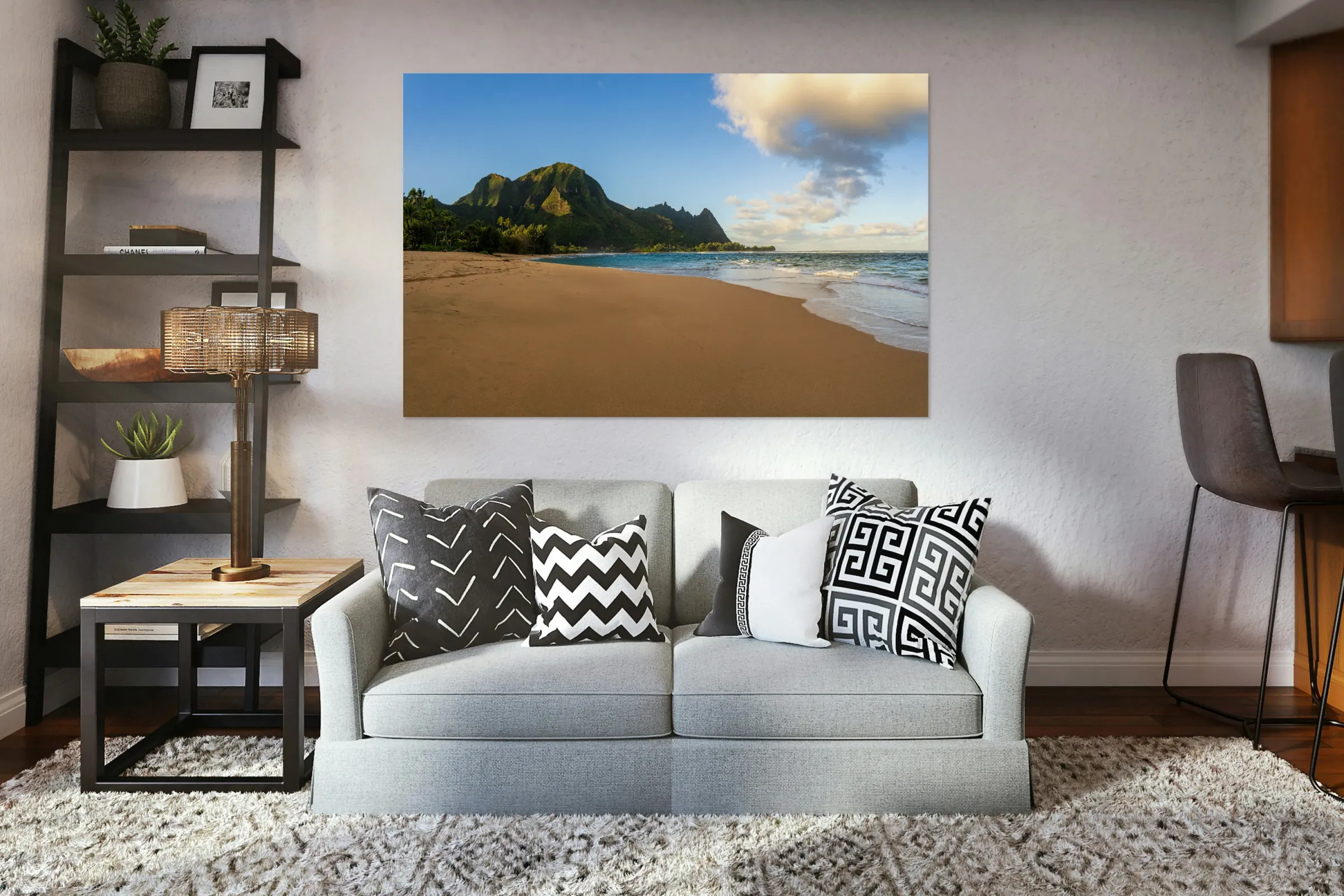 SUR CETTE OEUVRE: EARLY MORNING SUNRISE OVER TUNNELS BEACH ON KAUAI IN HAWAII