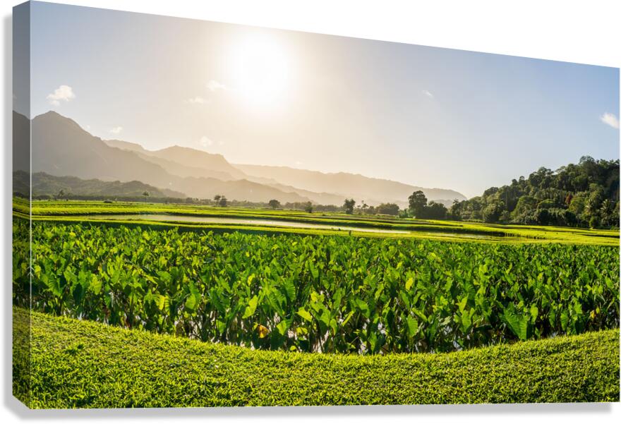SUR CETTE OEUVRE: VERDANT TARO FIELDS THRIVE UNDER THE HAWAIIAN SUN NEAR HANALEI B