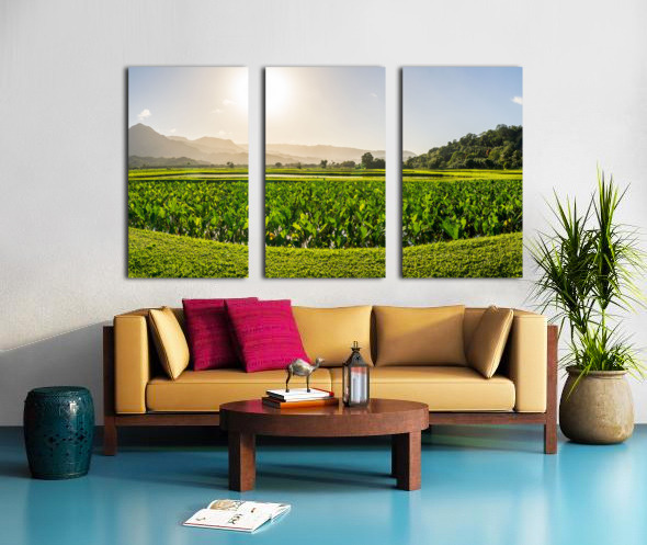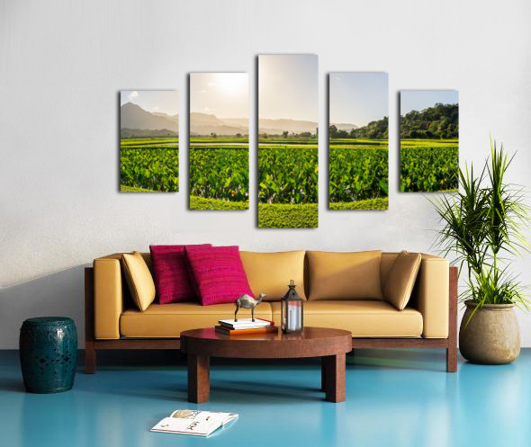 Verdant taro fields thrive under the Hawaiian sun near Hanalei B Impression sur toile