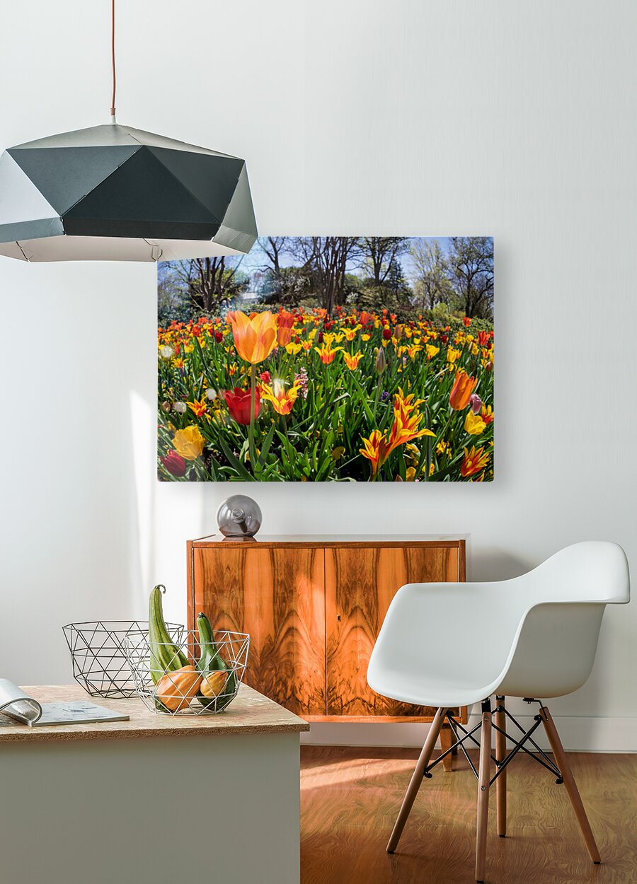 SUR CETTE OEUVRE: FIELD OF VIBRANT TULIPS IN FULL BLOOM CREATING A COLORFUL TAPES