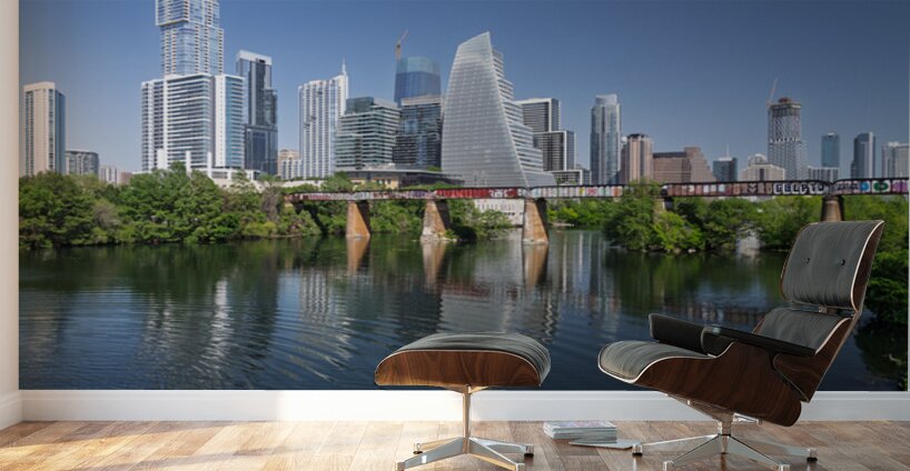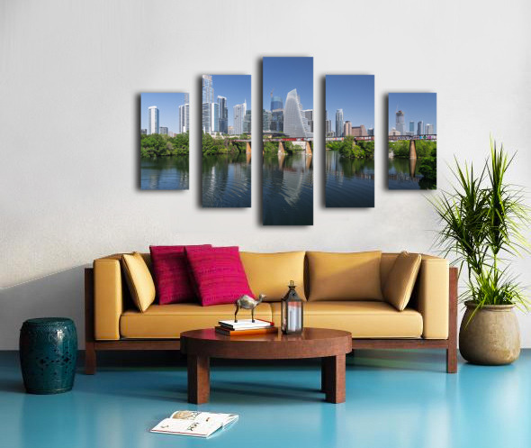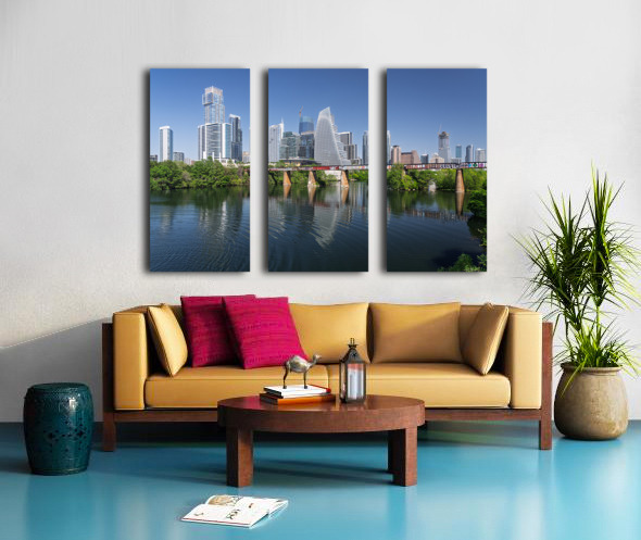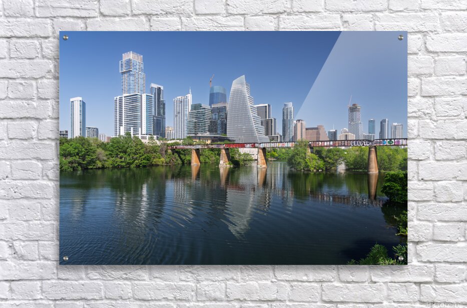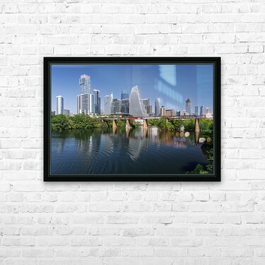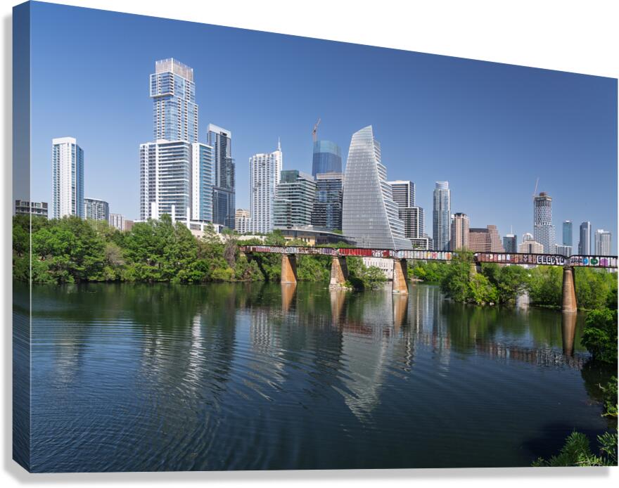 SUR CETTE OEUVRE: VIEW ALONG COLORADO RIVER OF AUSTIN TEXAS SKYLINE