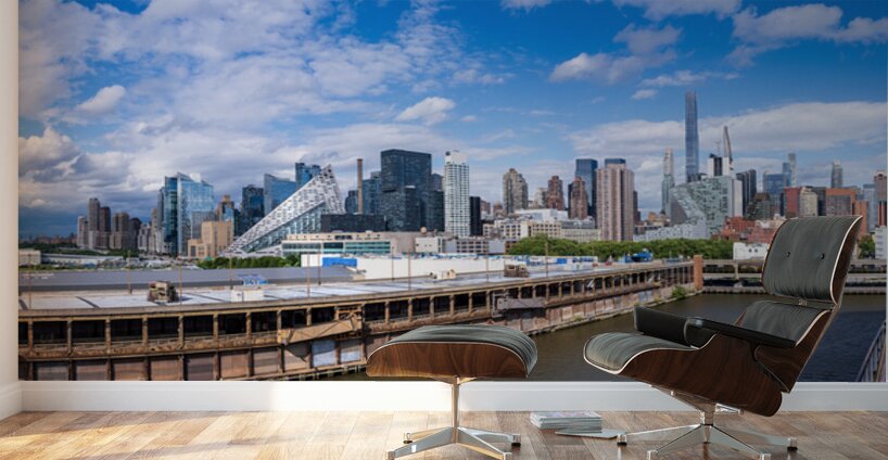 SUR CETTE OEUVRE: TALL OFFICE AND APARTMENT BUIDLINGS ALONG THE WATERFRONT IN MANH