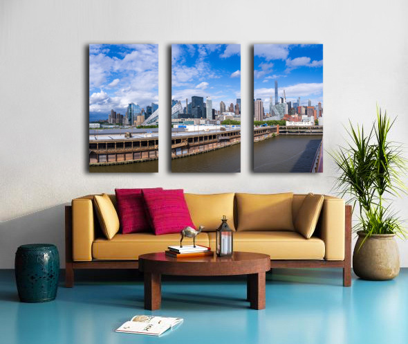 Tall office and apartment buidlings along the waterfront in Manh Impression sur toile