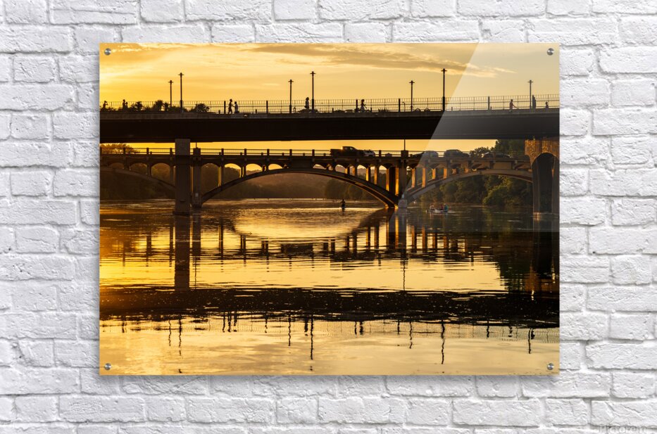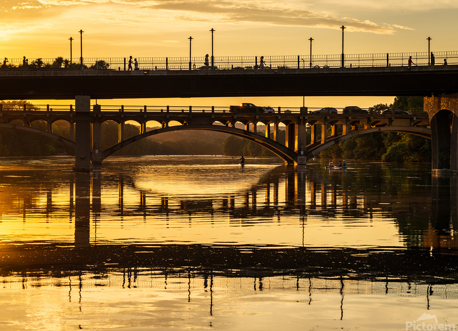 Pour obtenir "The Pfluger pedestrian bridge with the Lamar Boulevard bridge be" dans une impression encadrée.