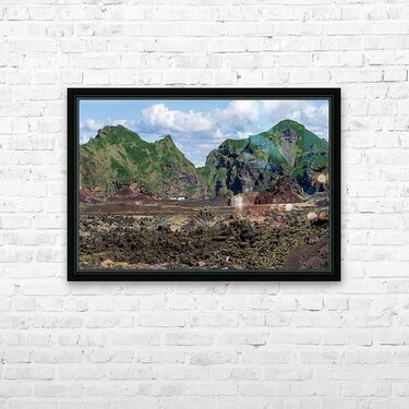 SUR CETTE OEUVRE: VIEW FROM VOLCANIC SUMMIT OF ELDFELL WITH VIKING NEPTUNE CRUISE