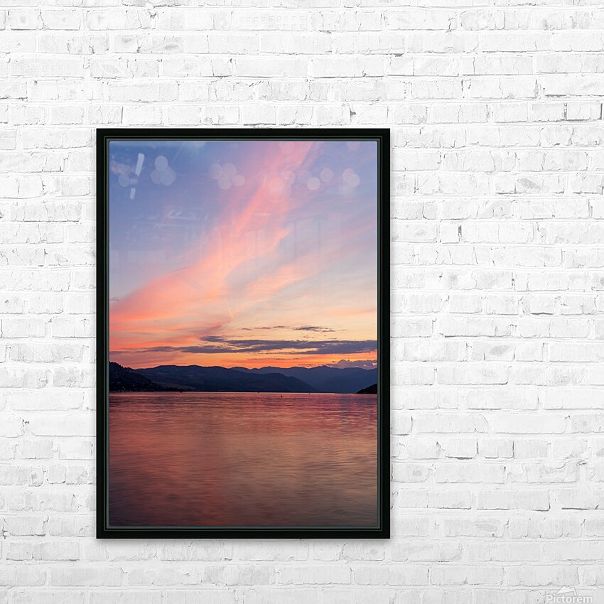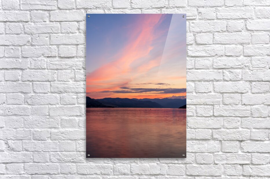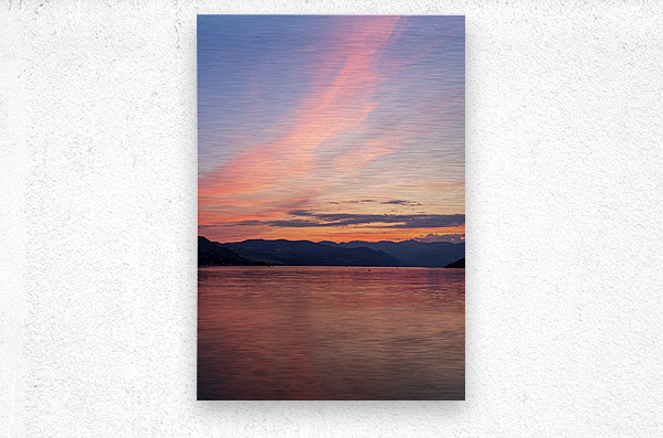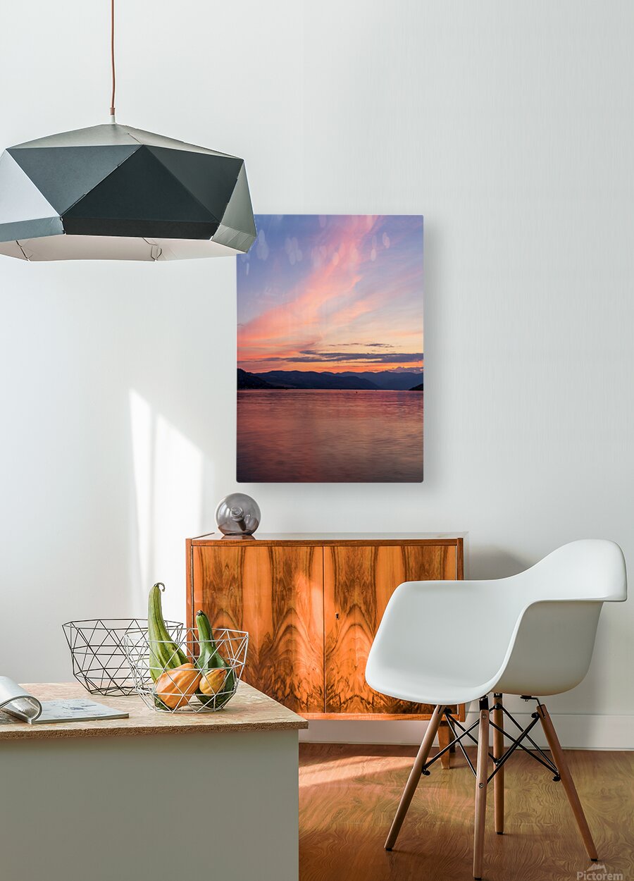 SUR CETTE OEUVRE: SUNSET OVER LAKE CHELAN WITH DRAMATIC SKY REFLECTED IN LONG DURA