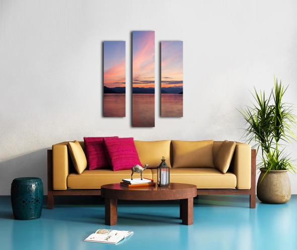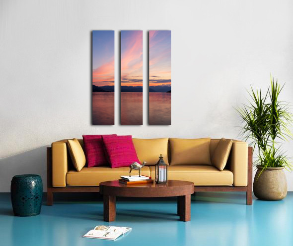 Sunset over Lake Chelan with dramatic sky reflected in long dura Impression sur toile