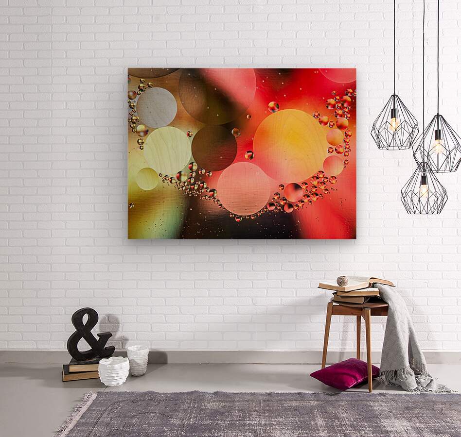 This photo features captivating bubbles and circles in vibrant colors that blend harmoniously, creating an abstract background full of life. Created from oil droplets in water that are each reflecting the color of a magazine cover placed below the water.