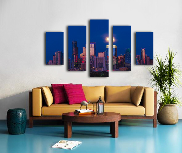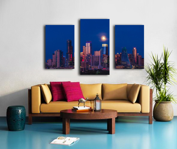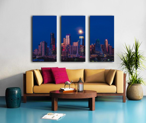 Harvest moon in the Austin skyline at sunset in Texas Impression sur toile