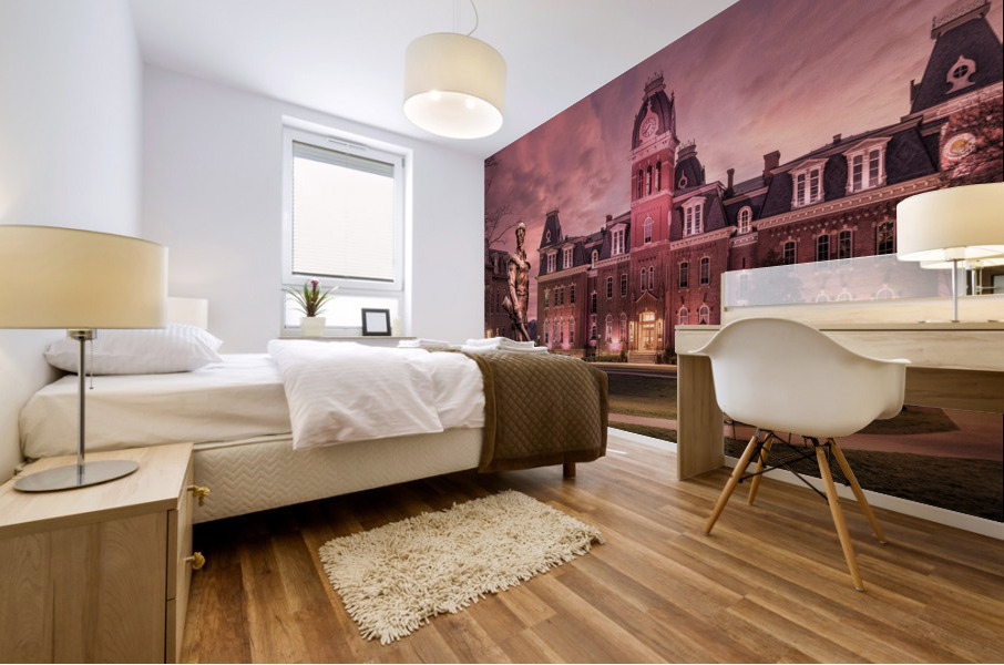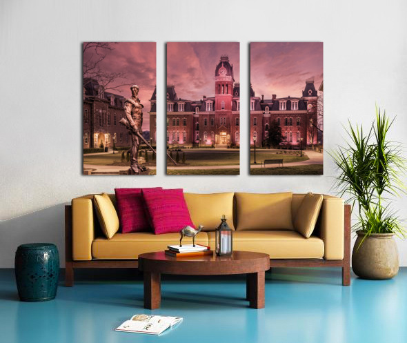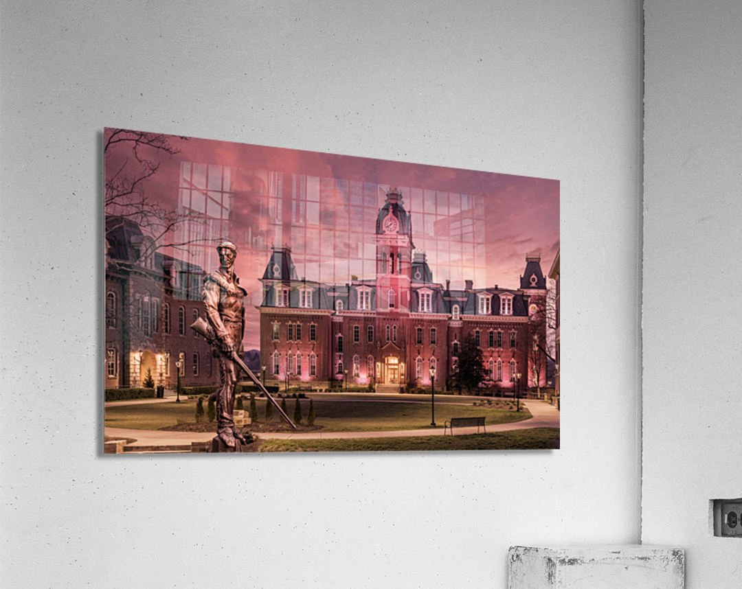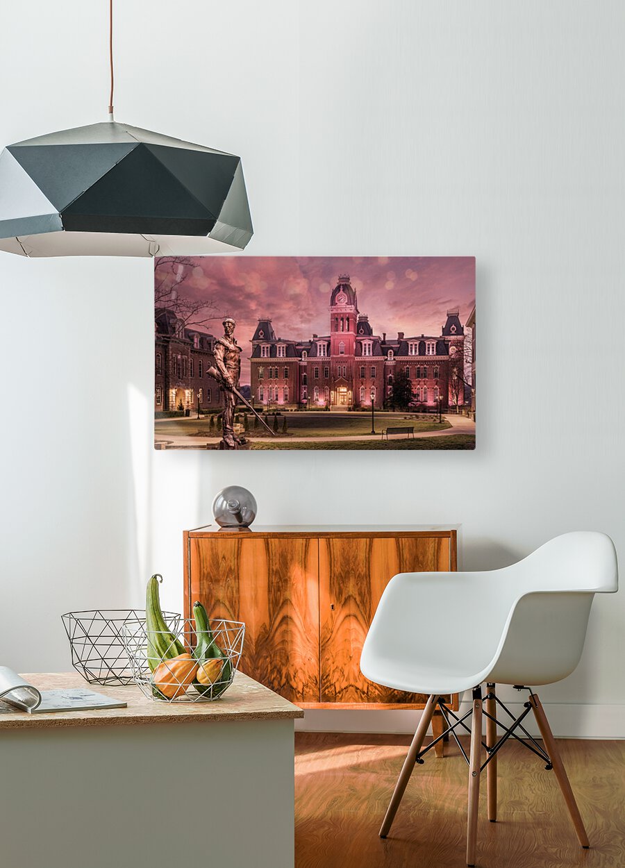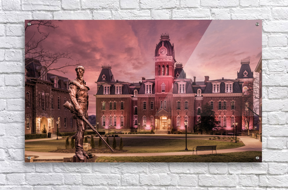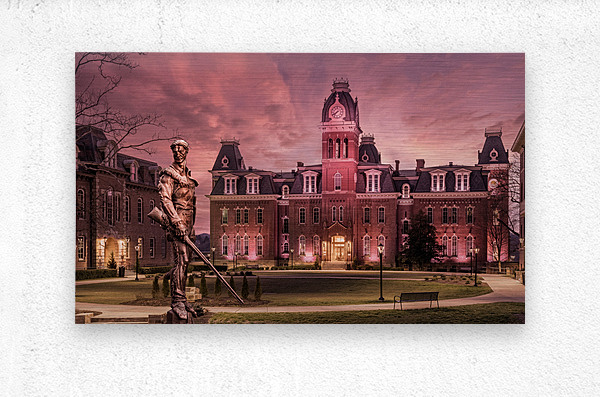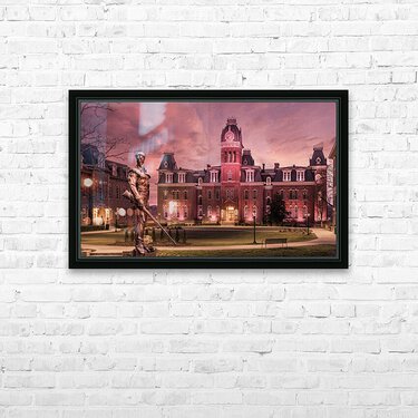 Discover the timeless allure of West Virginia University's iconic Woodburn Circle at sunset. This breathtaking panorama converted to an antique sepia finish, featuring the stately Woodburn Hall and Martin Hall, epitomizes the essence of academia, heritage, and the serenity of winter's touch. The famous Mountaineer statue has been transposed from its normal position across the street from this view to add some digital magic to the scene and incorporate one of WVU's icons into an equally iconic location at the University. Immerse yourself in the captivating drama of this exquisite photograph, which beautifully encapsulates the historic charm of Morgantown, WV, through its grand architecture. Each element of the composition resonates with grace, making it an enchanting addition to any art collection. Enchanting and eloquent, this photograph celebrates the time-honored elegance of West Virginia University's Woodburn Circle. Perfectly suited as a graduation gift or a prestigious addition to any faculty office, it stands as a poignant reminder of academic brilliance and the enduring charm of winter in Morgantown, WV. Embrace the heritage, embrace the beauty, and embrace the memories with this captivating piece of art.