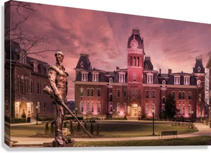 SUR CETTE OEUVRE: FAMOUS MOUNTAINEER STATUE IN FRONT OF WOODBURN HALL AT WVU