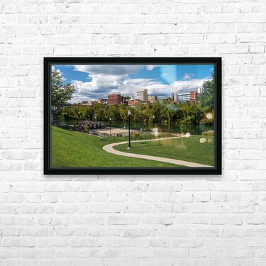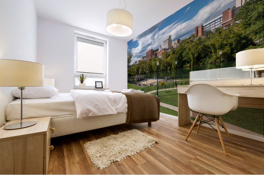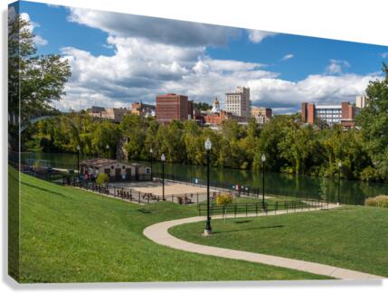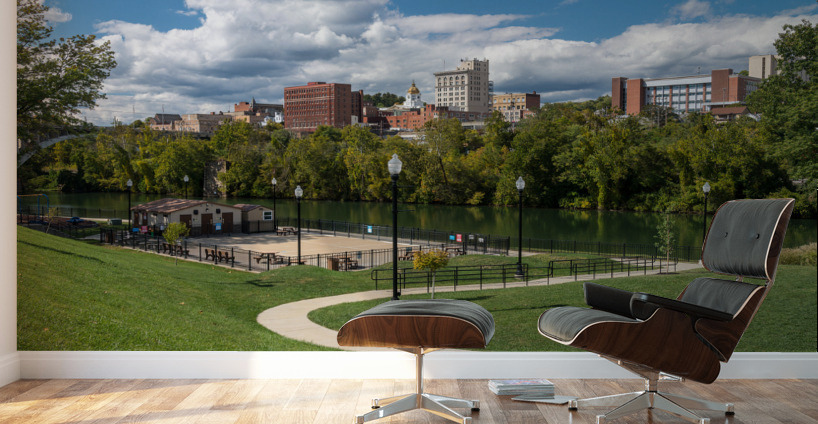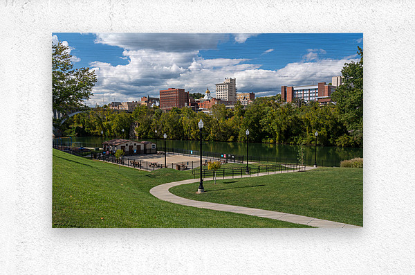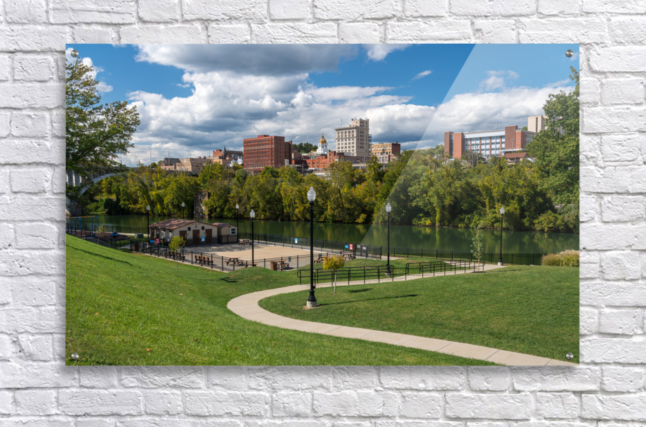 Panorama of the river and city skyline of Fairmont in WV taken from the Palantine park on the waterfront