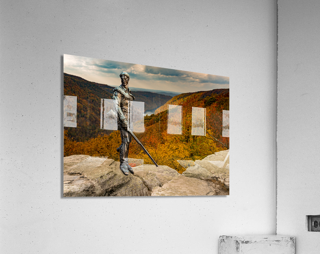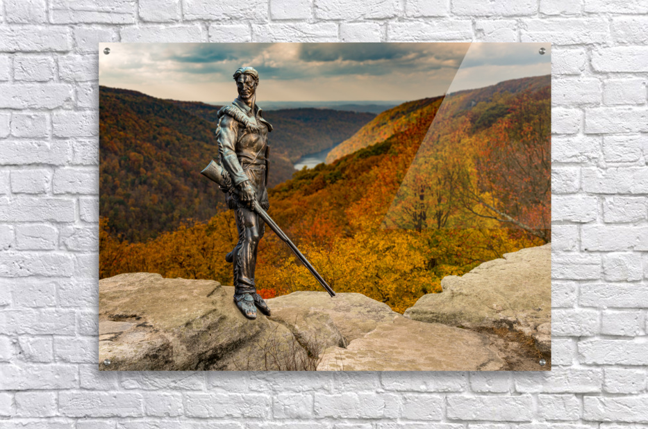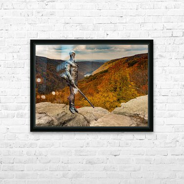 Famous WVU mascot The Mountaineer surveys the dramatic fall colors of the West Virginia mountains. Perfect graduation gift for a graduating student fr...[+]