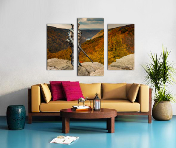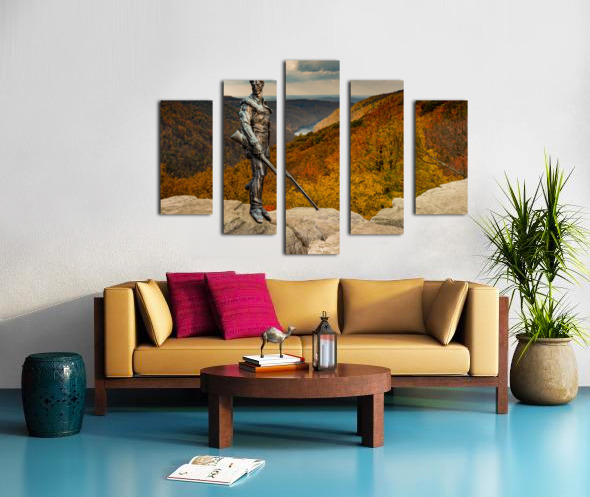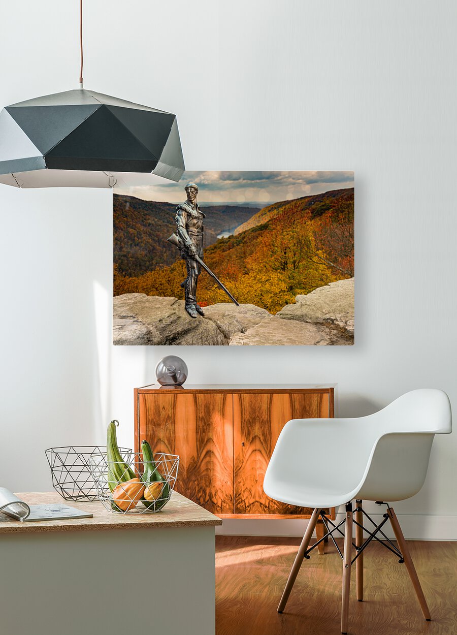 Famous WVU mascot The Mountaineer surveys the dramatic fall colors of the West Virginia mountains. Perfect graduation gift for a graduating student from the university
