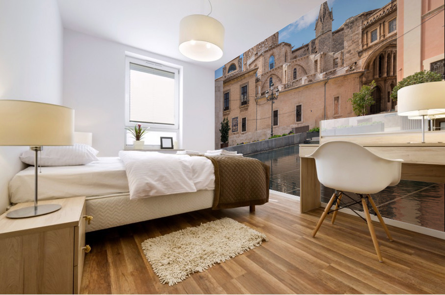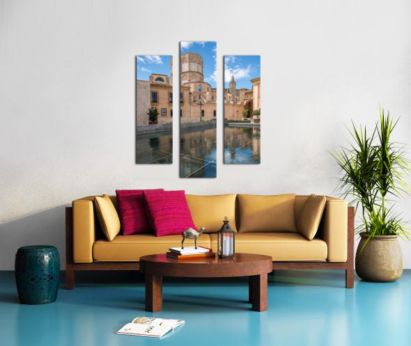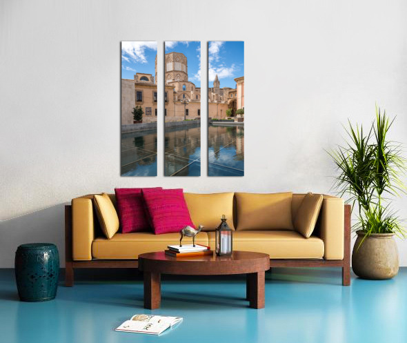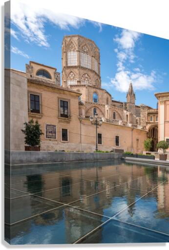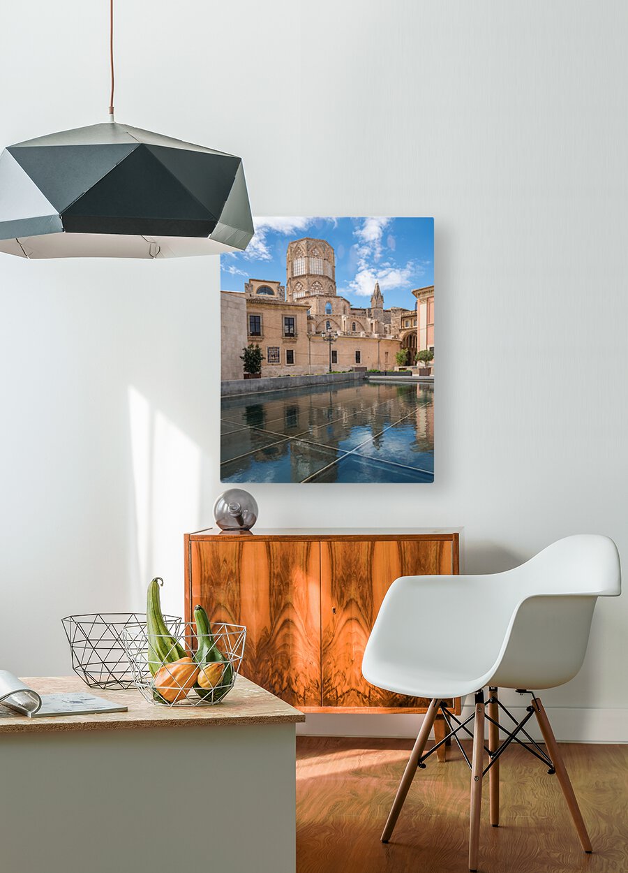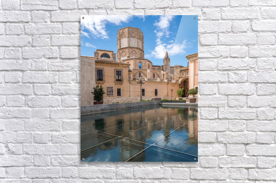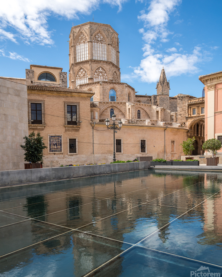 Reflection of Cathedral and Basilica Valencia Impression sur bois