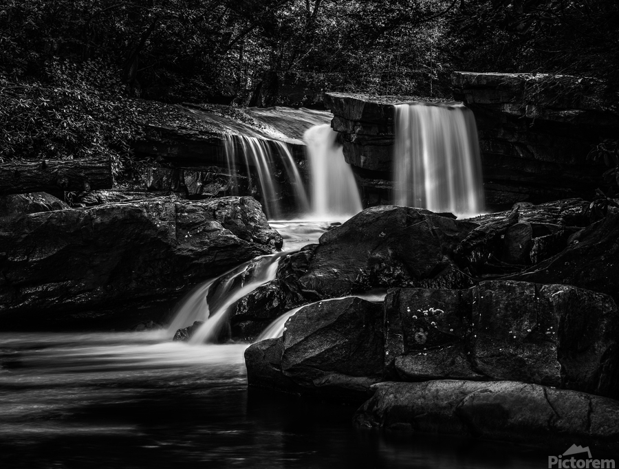 SUR CETTE OEUVRE: BLACK AND WHITE WATERFALL ON DECKERS CREEK