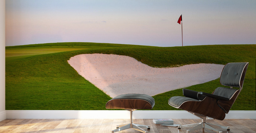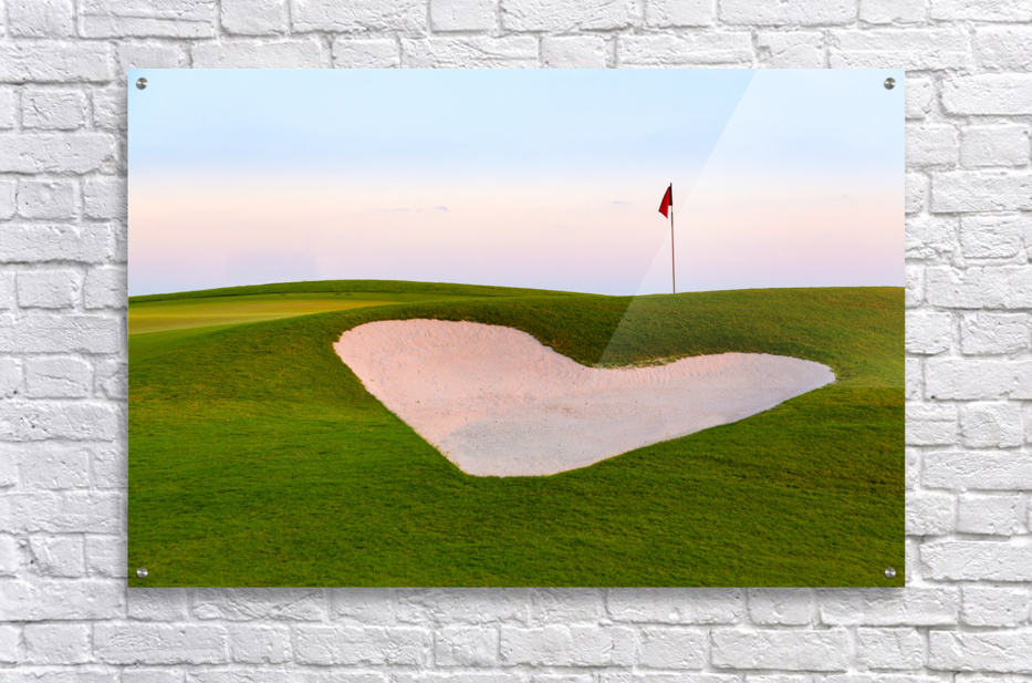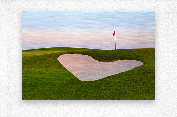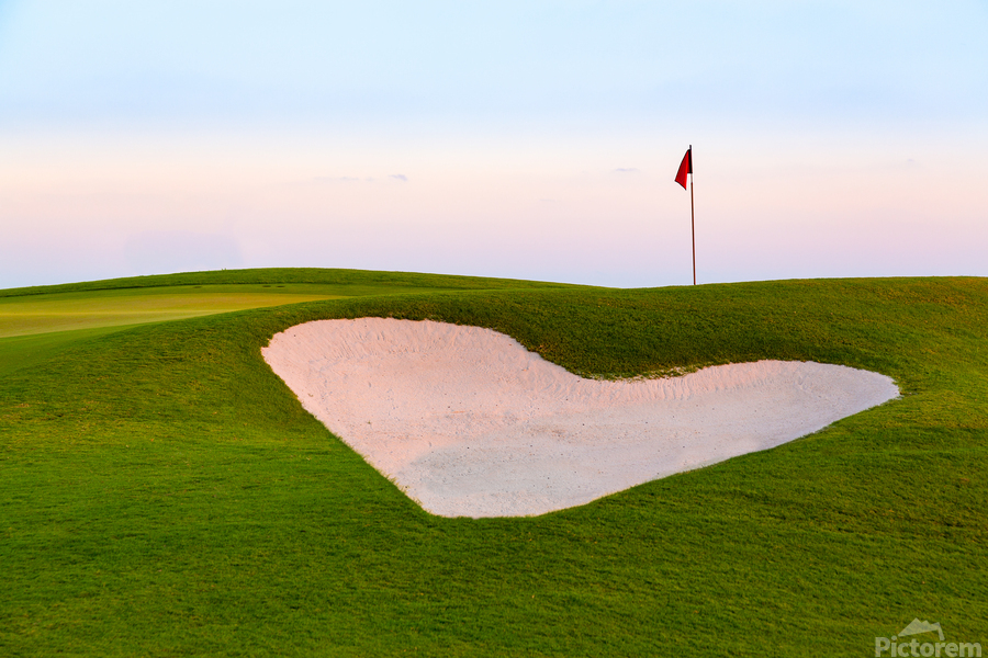 SUR CETTE OEUVRE: HEART SHAPED SAND BUNKER IN FRONT OF GOLF GREEN