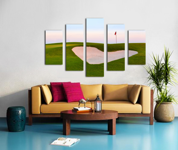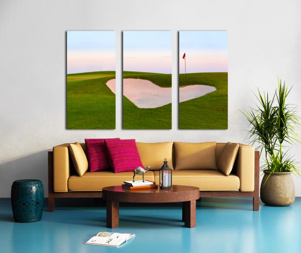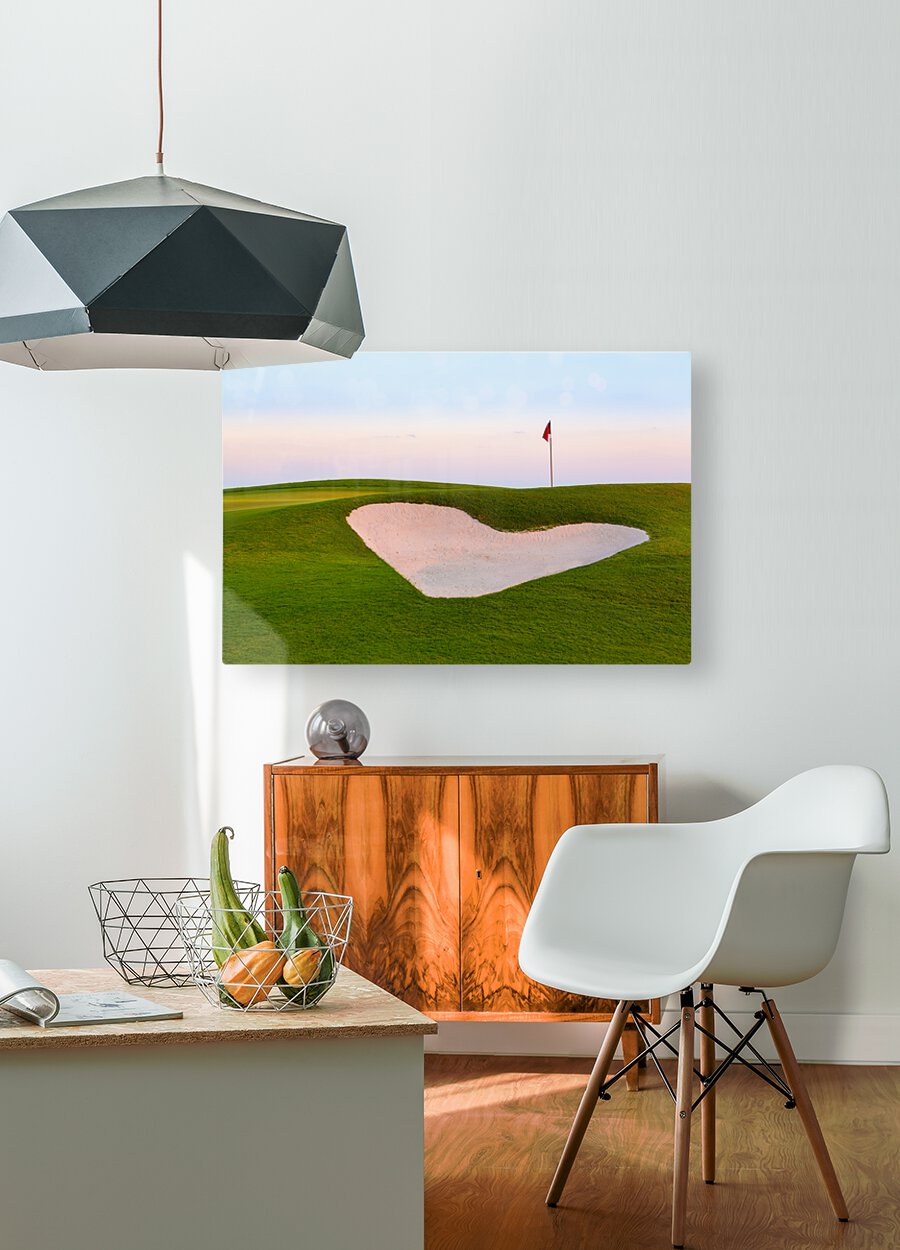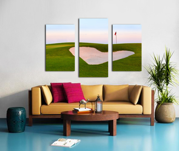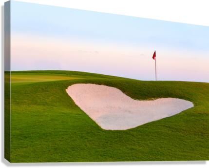 Heart shaped sand bunker in front of golf green Impression sur toile