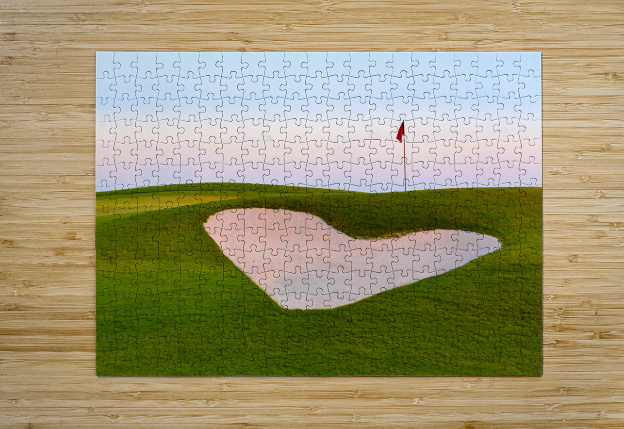Heart shaped sand bunker in front of golf green Steve Heap Puzzle