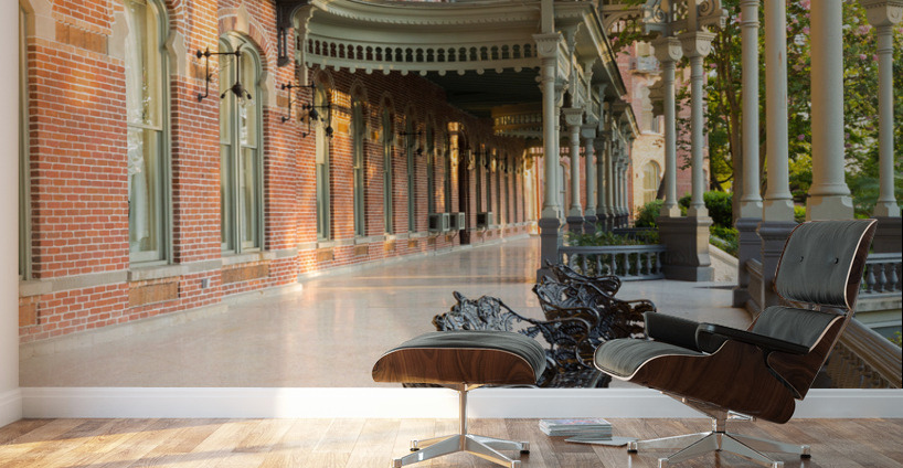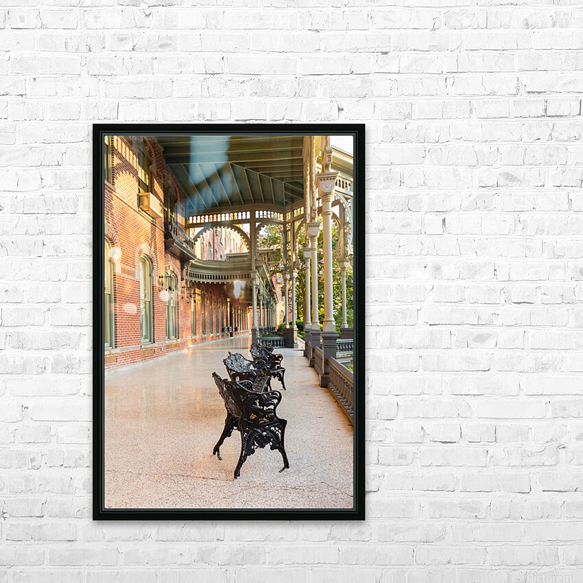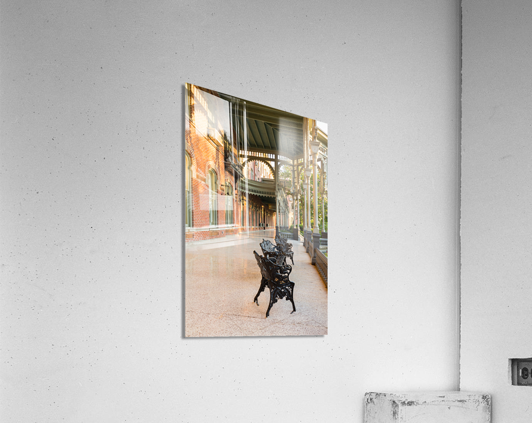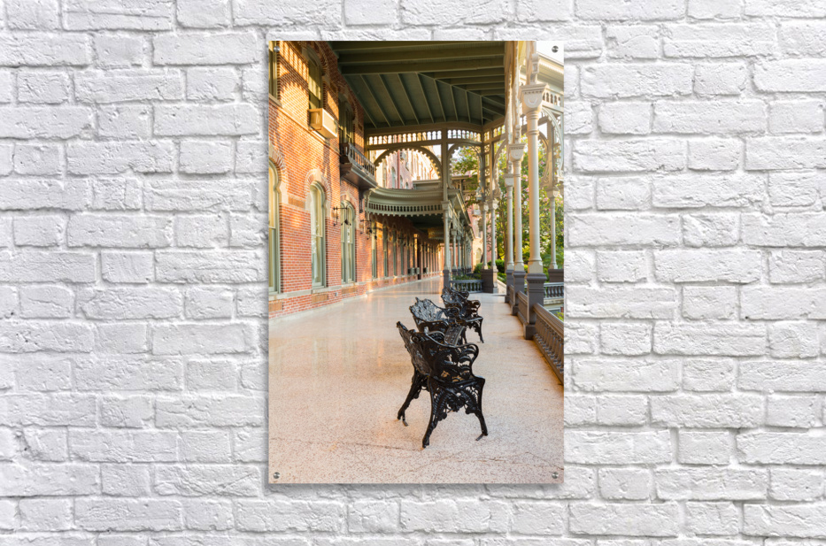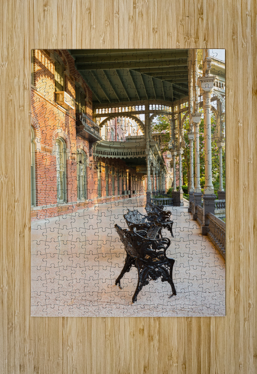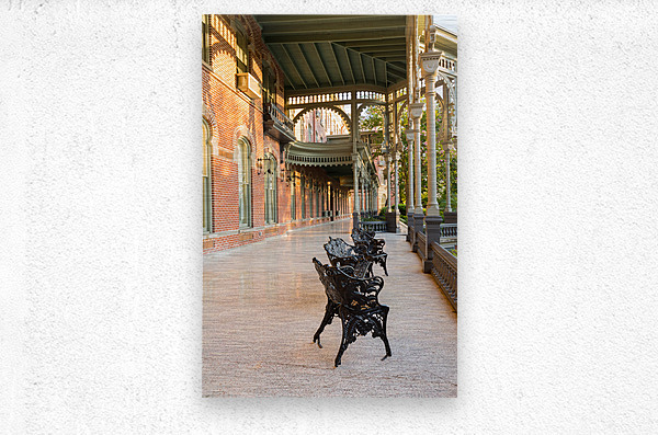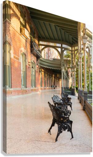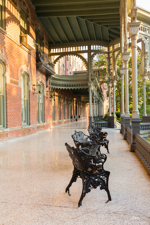 Cast iron chairs on the marble patio or balcony of Henry B Plant museum is moorish inspired architecture part of the University of Tampa.