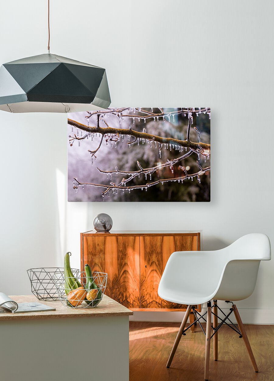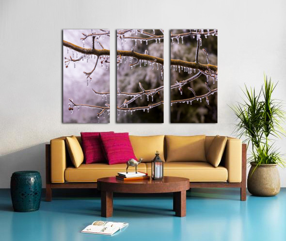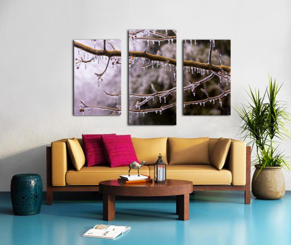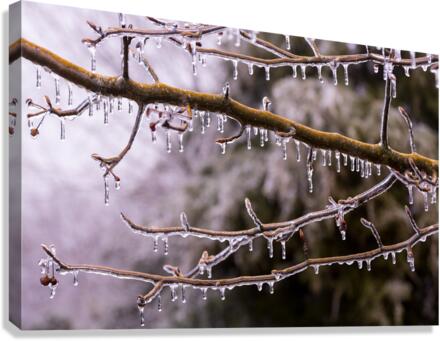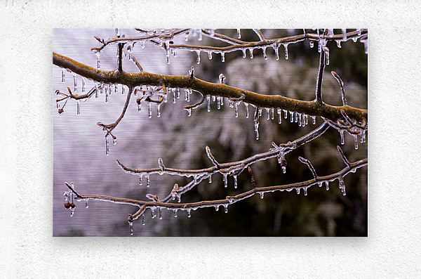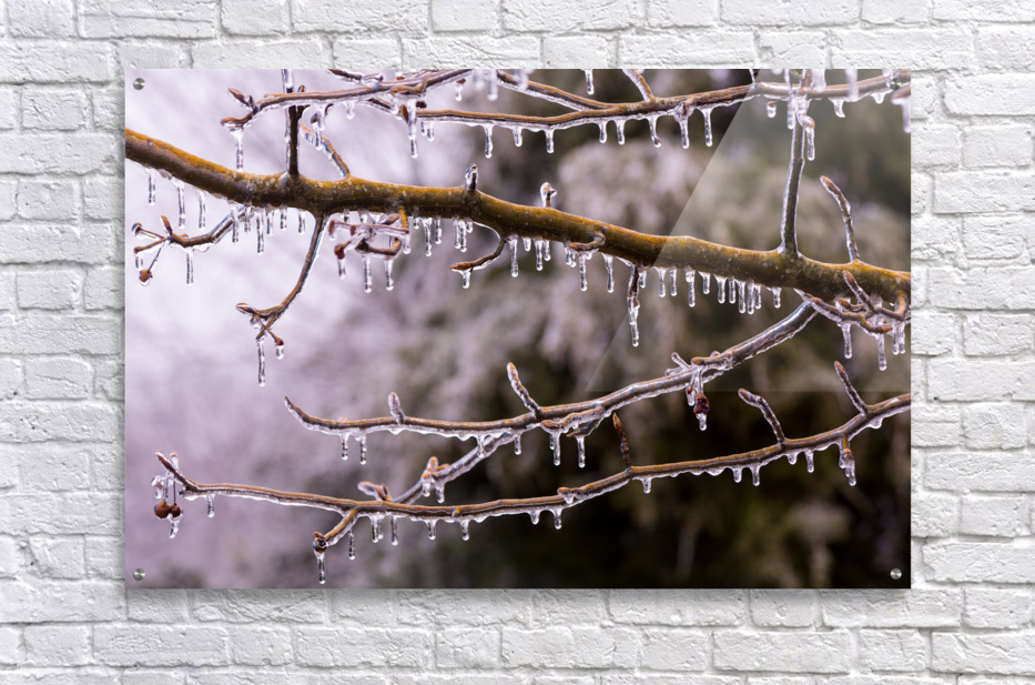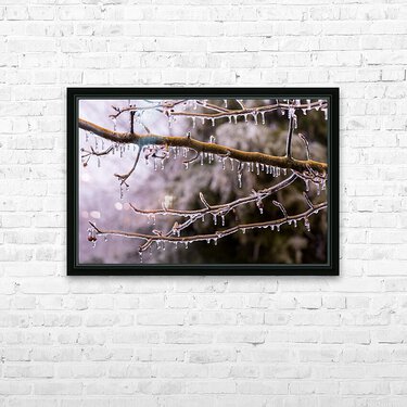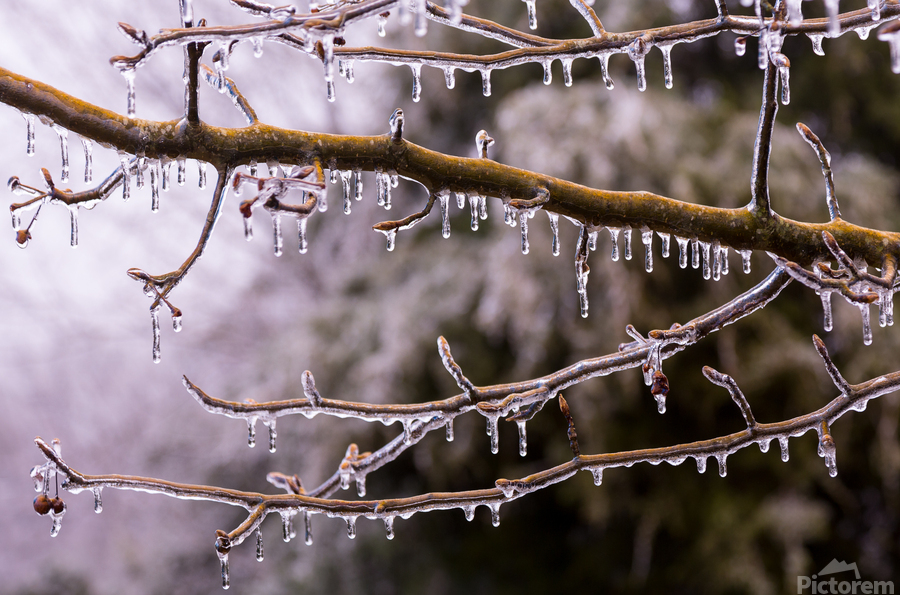 SUR CETTE OEUVRE: ICE COVERED BRANCHES START TO MELT TO ICICLES