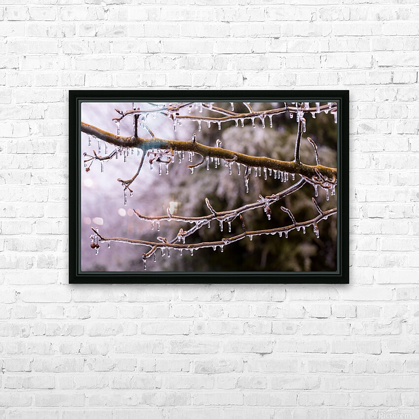 Pour obtenir "Ice covered branches start to melt to icicles" dans une impression encadrée.