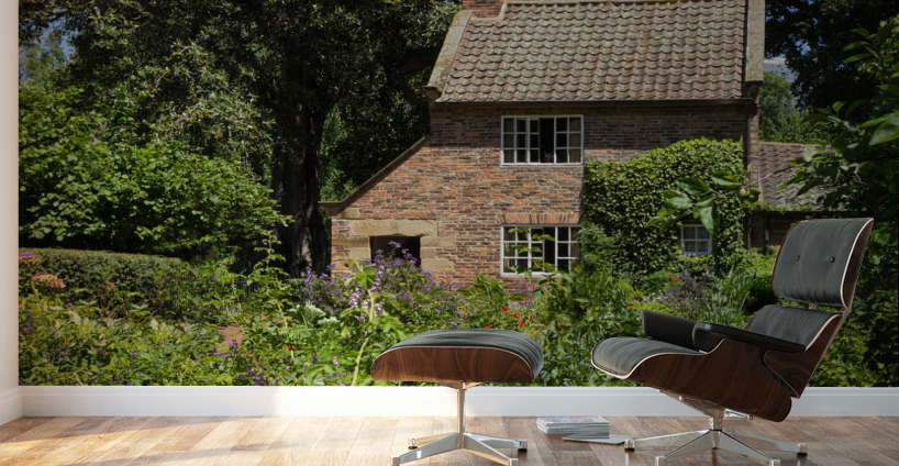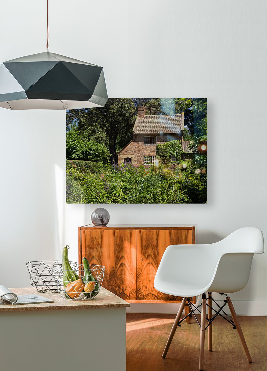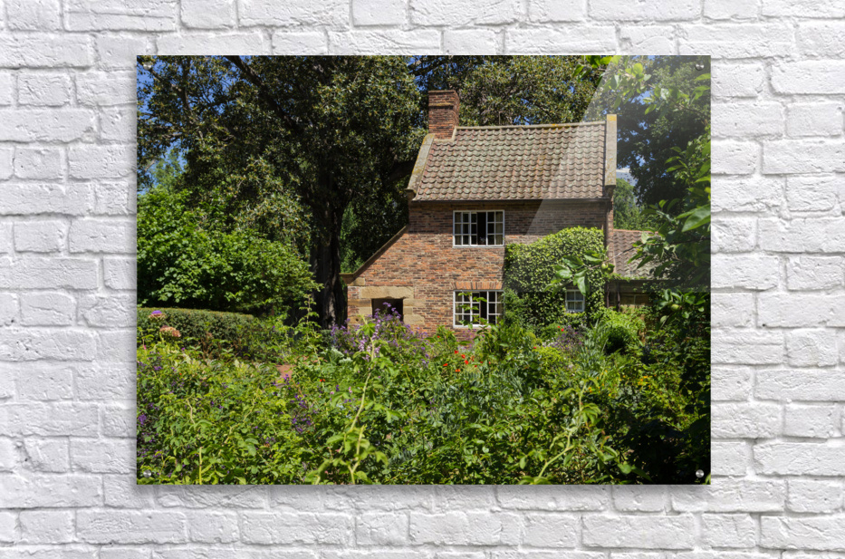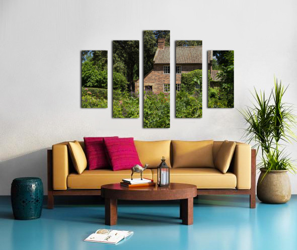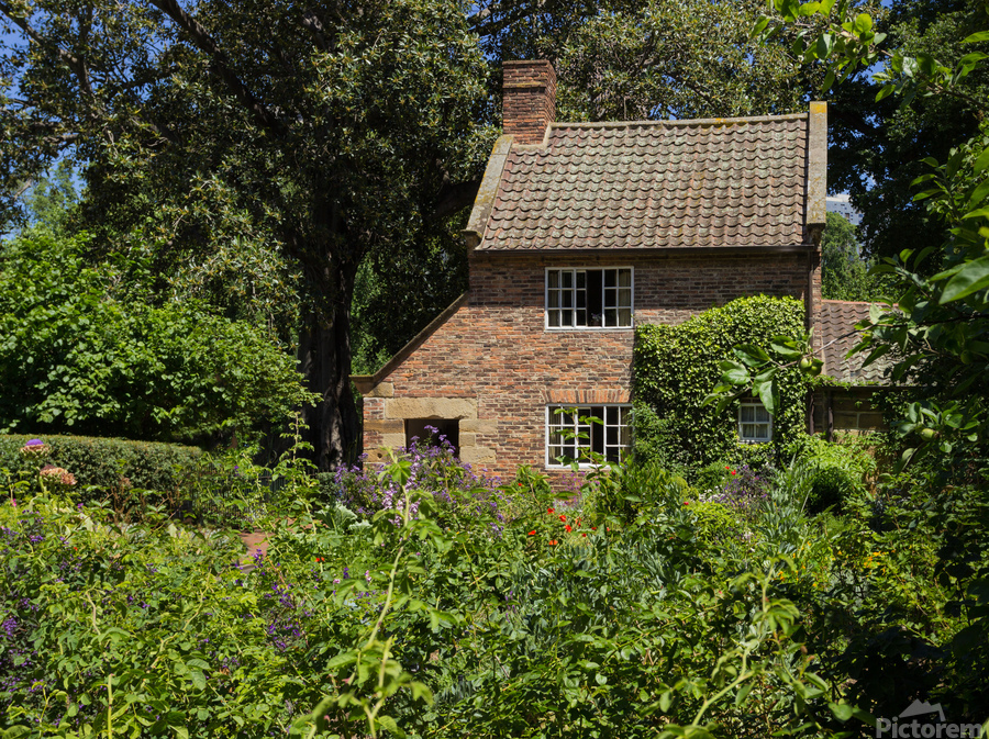 Cottage garden of small brick home Impression sur toile