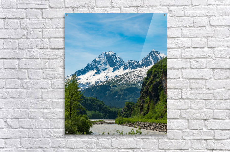 View of majestic mountains viewed through the gorge of Keystone Canyon near Valdez in Alaska