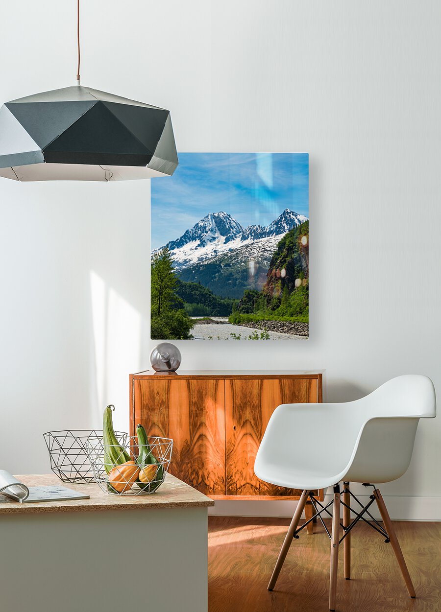 Majestic mountains from Keystone Canyon rise over trees Impression sur bois