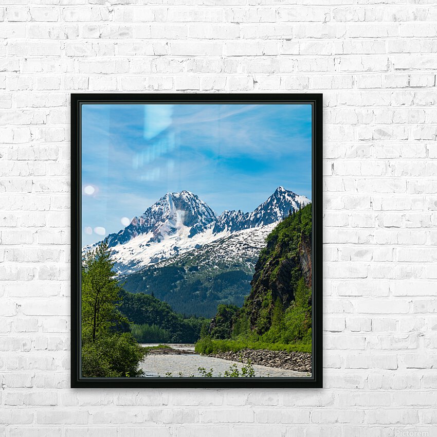 Majestic mountains from Keystone Canyon rise over trees  Impression sur bois