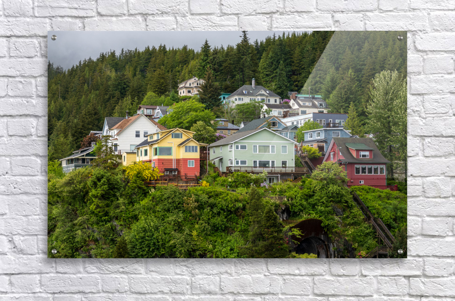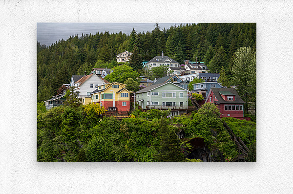 SUR CETTE OEUVRE: COLORFUL HILLSIDE HOMES ABOVE THE TOWN OF KETCHIKAN ALASKA