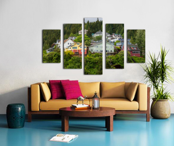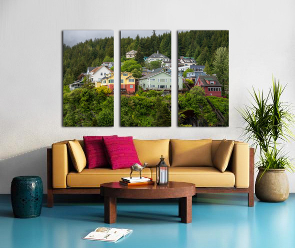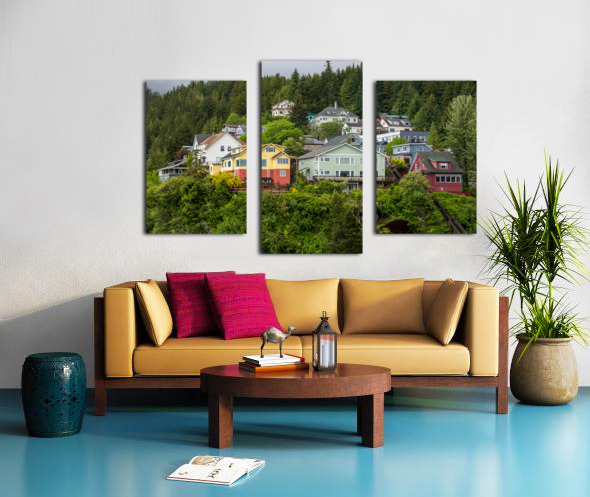 Colorful hillside homes above the town of Ketchikan Alaska Impression sur toile
