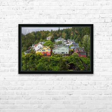 Colorful hillside homes above the town of Ketchikan Alaska Cadre photo