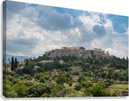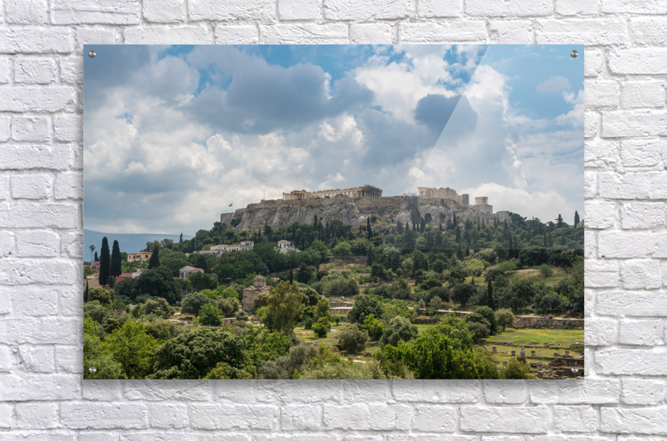 Acropolis hill rises above Greek Agora in Athens Impression sur toile