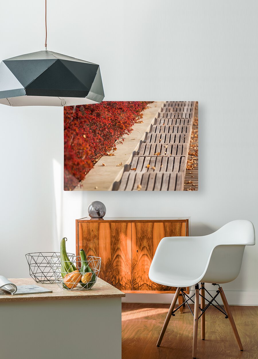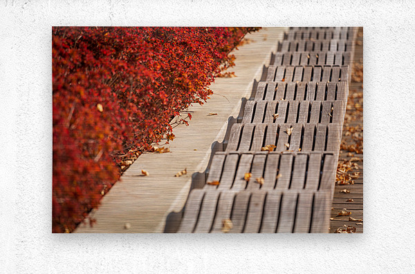 Modern wavy wooden bench in Yards Park Impression sur toile